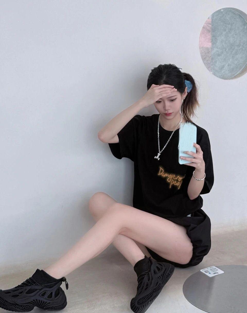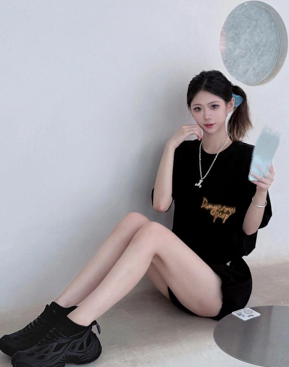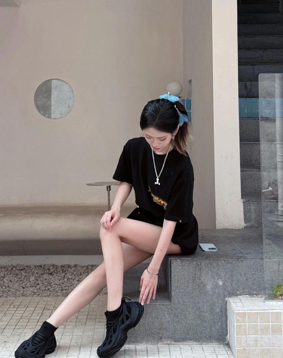黑色T恤搭配短裤,简约时尚,轻松出街!