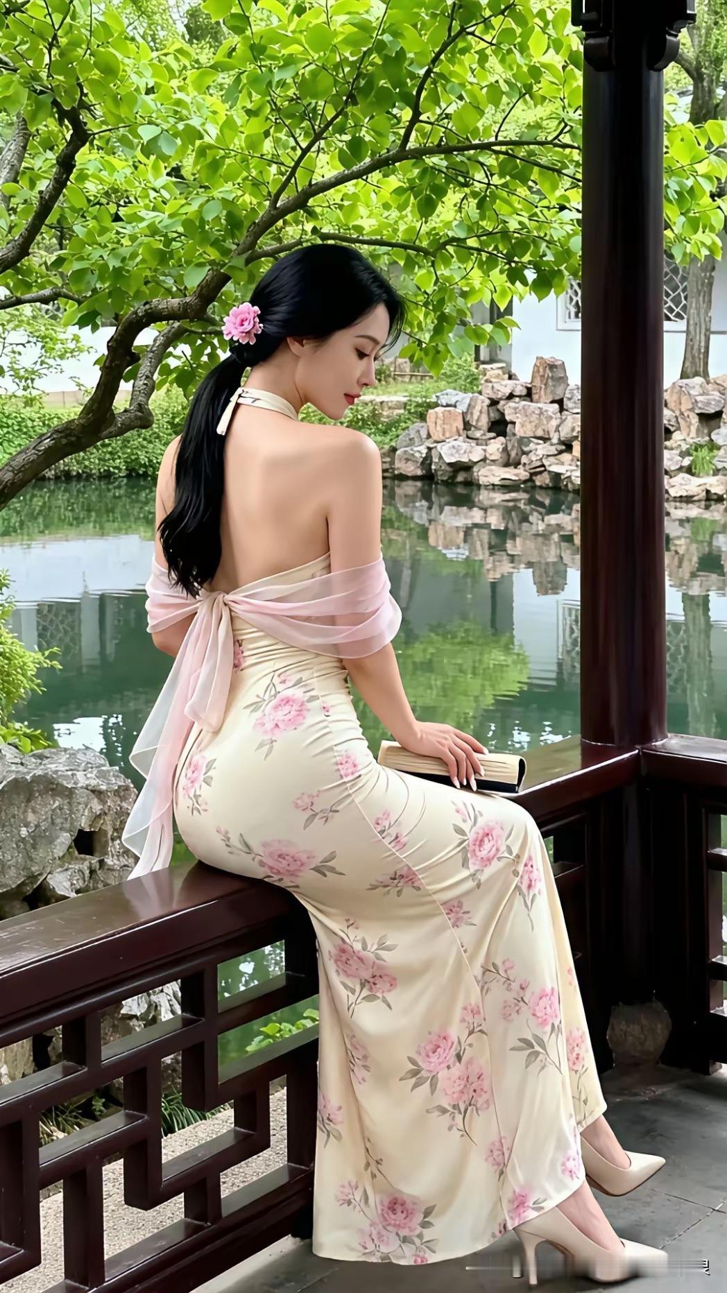 樱花树下,优雅坐着的少女,春日气息扑面而来🌸💐