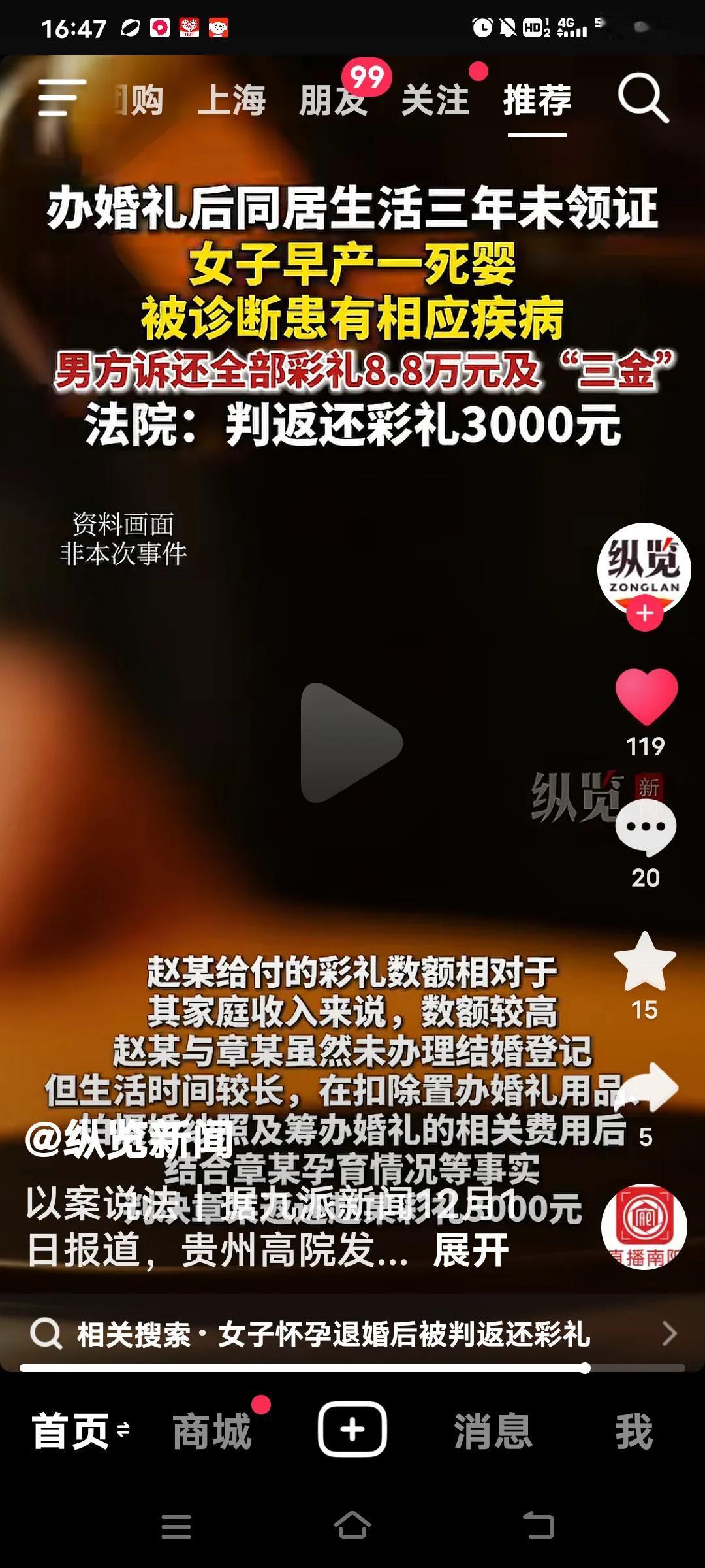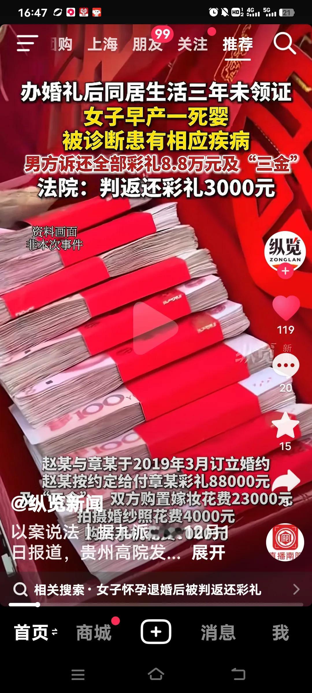 婚礼后没领证,女子早产竟遭男方索要彩礼,这事着实令人无语。 12月1日消息,贵州高院公布了一则案例。2019年,赵某与章某举办婚礼后,未登记便开始同居生活。同居期间,章某早产下一死婴后,还被医院诊断出患有相应疾病。 2022年6月3日,两人正式分开。赵某此前给了彩礼、三金等,此时要求章某返还。双方闹到了法院。法院认定部分财物不算彩礼,需综合各种情况确定返还比例。 只因女子早产死婴且患病,男子就要求退还8.8万彩礼及三金,这还是人干的事吗?说到底,没领证也算事实婚姻了,两人都有孩子了,尽管孩子没能存活,这对章某而言何尝不是巨大打击?况且,怎么能去法院起诉要求退彩礼呢?评论区网友都看不下去了,纷纷质疑男方还好意思要这8.8万彩礼。 这不是钱多少的问题,关键是女子并非骗婚。双方购置嫁妆花了23000多元,拍婚纱照花了4000元,买手机也花了7000多元。 好在法院英明,判决女方退还男方3000元。看来婚姻不是儿戏,不看透一个男人的心,真不能轻易付出真心,不经历事情些,又怎能看清一个人呢?真是让人倍感悲伤!订婚退彩礼 婚礼未办的原因