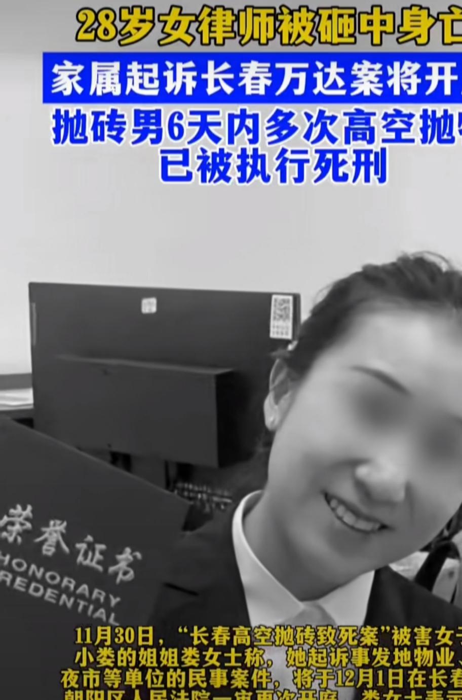 长春高空抛砖案民事再审开庭:死刑凶手伏法后,家属追责的背后是对公共安全的执念 11月30日,记者从“长春高空抛砖致死案”被害女子小娄的姐姐娄女士处获悉,她起诉事发地物业、夜市等单位的民事案件,将于12月1日在长春市朝阳区人民法院一审再次开庭。这场庭审距离凶手周某被执行死刑已过去一个多月,却承载着一个破碎家庭对公道的最后期盼,更叩问着所有公共场域的安全责任底线。 28岁的小娄本有着光明的人生,高考630多分深耕法律专业,在北京国企任法务,带着对未来的憧憬赴长春探望好友,却在夜市买小吃的几分钟里,被周某从32楼抛下的砖头击中,永远定格在最美的年华。更让人痛心的是,周某案发前已有多次高空抛物恶行,投掷过桶装水、可乐罐,甚至案发前几小时已抛过砖头,有人报警后,物业与夜市管理方却未采取任何防控措施,30楼以上楼道随意堆放的砖头成了致命凶器,天台大门敞开无人管控,最终让悲剧无可挽回。 凶手伏法并未抚平家属的伤痛,年过七旬的父母终日以泪洗面,娄女士的孩子因恐惧不敢独处,总叮嘱母亲“外面太危险”。这个家庭失去的不仅是优秀的女儿、温柔的小姨,更是对公共空间的安全感。娄女士坚持追责,索赔200余万元的背后,从不是单纯的经济诉求,而是想让物业与相关单位正视责任——若当初及时清理楼道杂物、管控天台通道、响应群众预警,这场悲剧本可避免。正如她所说,只想警醒世人,不让更多家庭重蹈覆辙。 庭审现场,万达方虽表露调解意愿,但责任认定仍存争议。根据《民法典》规定,物业服务企业需履行安全保障义务,未尽责便要担责,这起案件早已超越个体纠纷,成为公共安全治理的一面镜子。高空抛物入刑的背后,更需要管理者用责任筑牢防护网,毕竟每一次疏忽,都可能酿成无法挽回的悲剧。 我们期待法院给出公正判决,不仅还小娄一家公道,更能倒逼所有责任方守住安全底线。愿这场漫长的追责,能让“头顶上的安全”真正落地,愿每个走在街头的人,都不必担心突如其来的风险,这才是对逝者最好的告慰。你是否也认同公共场域的安全责任不容懈怠?欢迎在评论区留下你的看法。#长春高空抛砖致死案高楼抛物事件