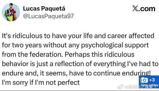 帕奎塔关于他的红牌,是不想忍受英足总的爆发:"人生和职业生涯被影响整整两年,足总却未提供任何心理支持,这太荒谬了。或许这种荒唐行为正是我不得不忍受的一切的缩影,而且看起来还得继续忍受!如果我不够完美,抱歉。