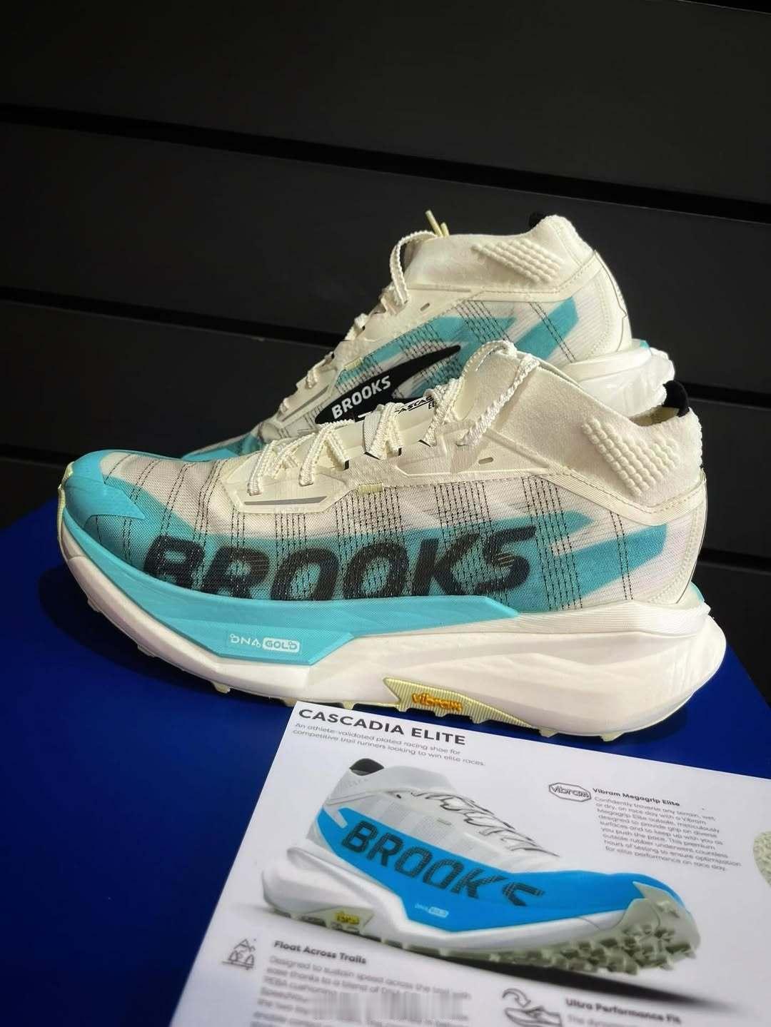 布鲁克斯 Brooks Cacadia Elite,看硬件是可以:DNA GOLD 纯PEBA中底 + Vibram Megagrip 大底 + Matryx 含Kevlar凯夫拉纤维鞋面 + 混碳纤维 Pebax SpeedVault+ 越野推进板。Brooks布鲁克斯 越野跑鞋 好鞋抢鲜看