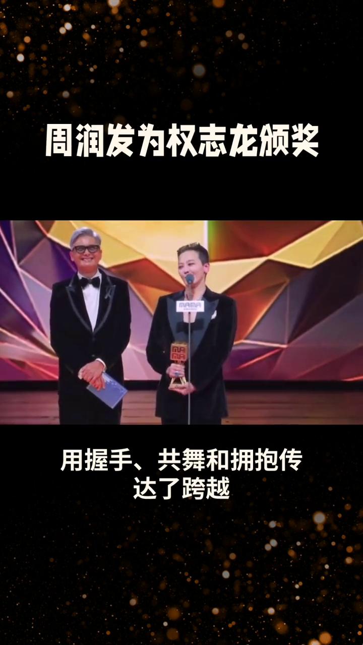 周润发为权志龙颁奖。 70岁的周润发时隔十年再次走上MAMA颁奖礼舞台,为权志龙颁发"年度艺人大赏"。这一幕温馨感人,引发全场动容。 周润发以颁奖嘉宾身份亮相香港MAMA颁奖礼,他不仅在颁发压轴大奖前暂停流程,呼吁全场起立默哀悼念香港火灾事故的遇难者,还用三种语言表达了深切的慰问。周润发用行动证明娱乐不仅仅是娱乐,生命更加重要。 十年后,两人以几乎相同的造型再次同台,用握手、共舞和拥抱传达了跨越时空的情感连接。此次颁奖不仅是对权志龙的认可,更是传递了周润发一贯倡导的人文关怀和责任担当。