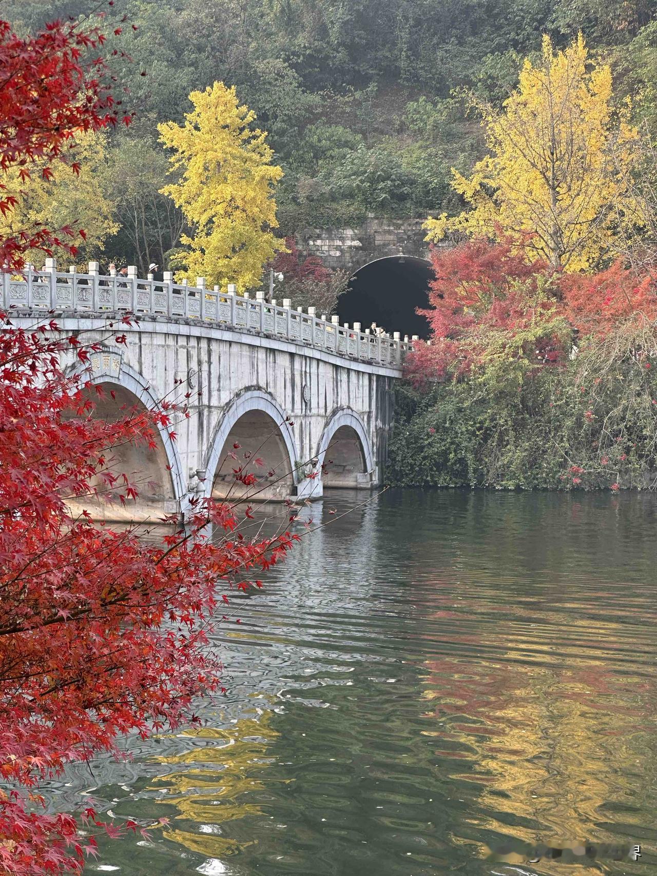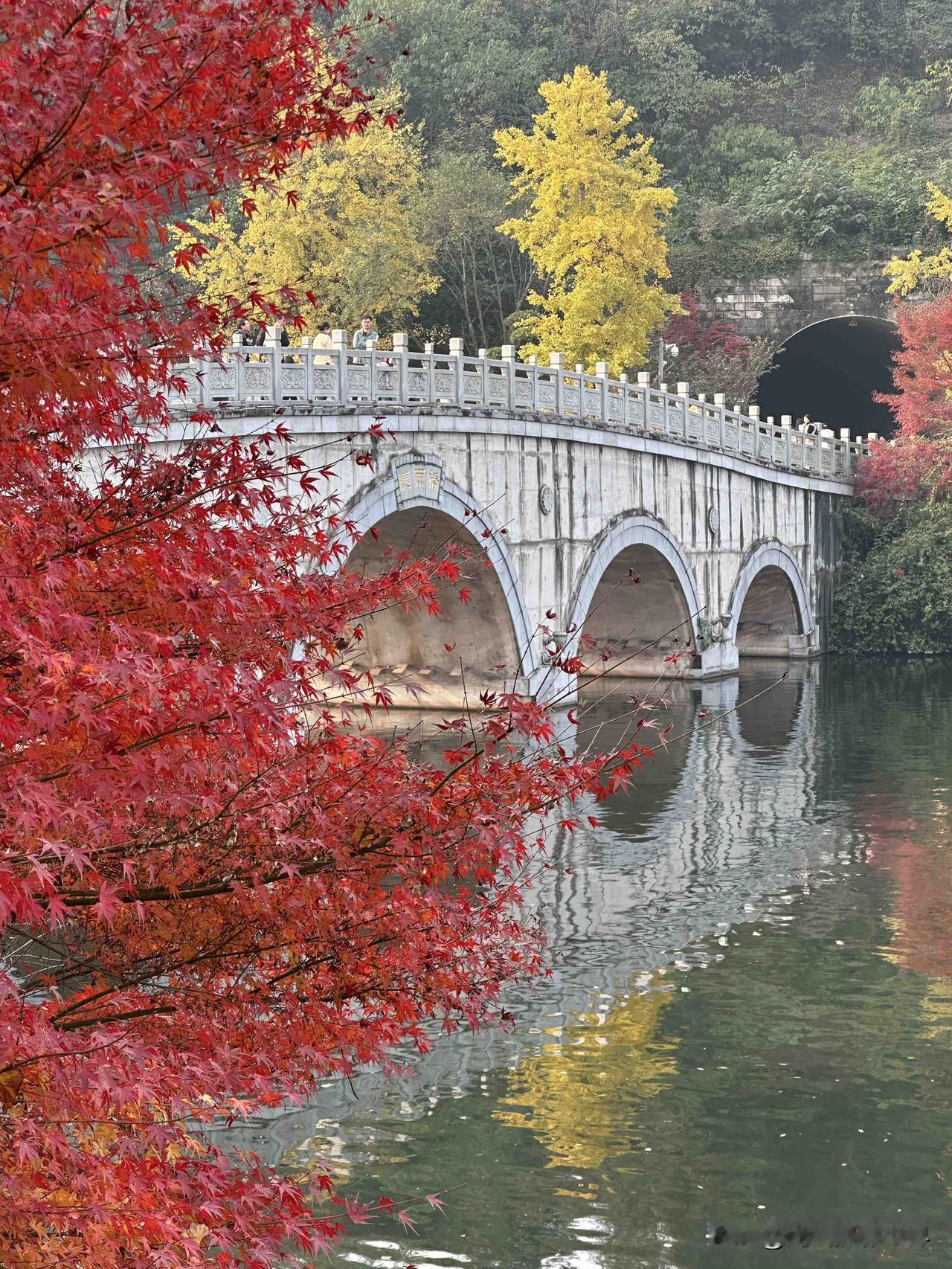 这真的是完全可以冒充我在浙江杭州啦!重庆园博园,最美的两棵红枫树,搭配金黄色的银杏树秋色,颜值完全可以与南京杭州苏州最好看的红枫树媲美啦! 如果我不说这是重庆园博园,你知道这是在重庆吗? 这是听雨桥边,距离秋亭桥也很近啊! 啊哈哈,重庆的秋天真的越来越美啦! 20年前,重庆主城几乎没有秋色! 10年前的重庆园博园,秋色才刚刚起步,那时候的重庆人,只能去光雾山或者九寨沟、川西,才能看到真正的秋色! 2025年深秋的重庆主城区,真的是秋色浓艳,太美了啊!