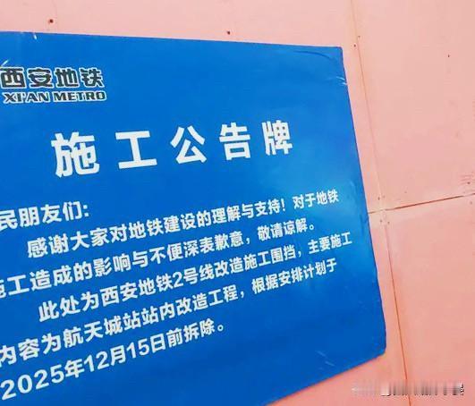 西安地铁航天城换乘站(可换乘15号线与2号线)的施工改造仍在进行! 原本计划11月30日前拆除围挡,现在更新为12月15日前完成拆除,整体建设进度依旧有序推进。