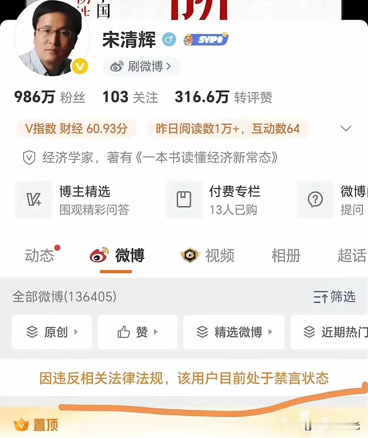 被禁言了 这个对外喊自己“经济学家”,的“砖家”,结果是自封的,所谓“智库”其实就他光杆司令一个,粉丝居然有近千万 前阵子嘴炮胖东来,说人家没竞争力、创始人“没文化”,还扯“河南出不了华为”搞地域黑,结果直接被胖东来告了。以前还骂过华为、建议砍假期,连虐猫考生都帮着说话,简直离谱啊 最膈应的是他儿子出事那年,拿现场照片炒热度,后来又因嘴欠被禁言 这人就是靠挑事博流量,既没真才学也没底线,被禁言纯属自己作的,少看点他的言论,省的添堵! 狗屁经济学家