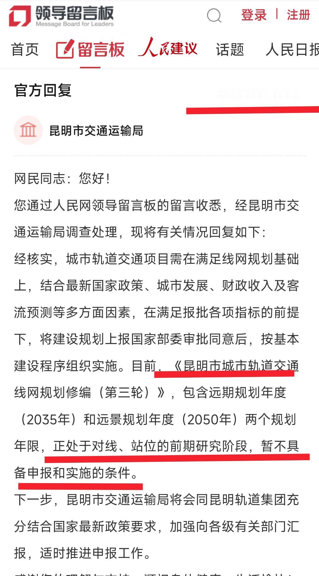 这样看来昆明正在建设的地铁线路只有1号线西北延与2号线二期,至于昆明地铁第三轮规划短期来看是很难获得批复,特别是看到11月27号的最新消息更是验证了这个推论。 具体来说昆明地铁远期规划目前正处于前期研究工作,暂不具备申报与实施条件。这就意味着昆明地铁里程未来会达到188公里,之后想要继续修建地铁就不那么容易了,见此情景不禁感慨晋宁区、安宁市想要实现地铁梦还需要多等待几年才有机会。