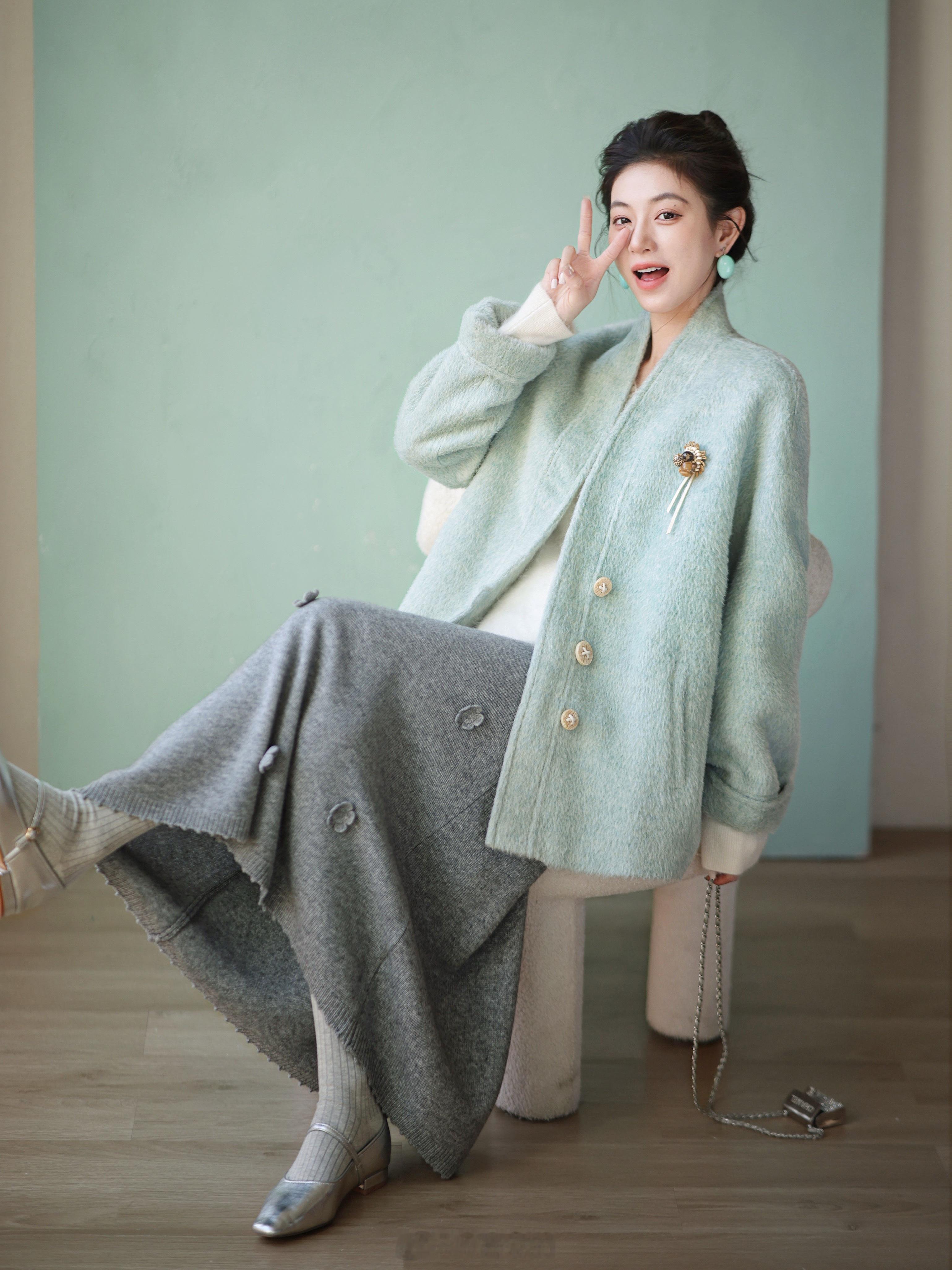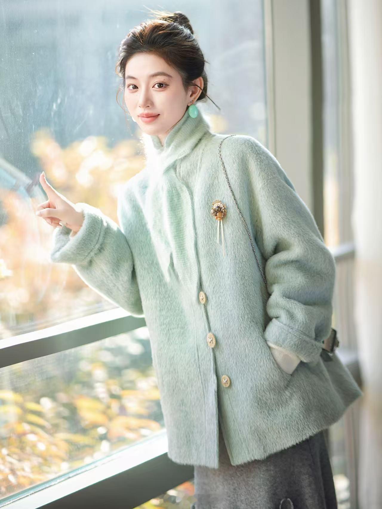 温柔干净又书香气质的大衣竟在我身边进口100苏力羊驼 国际协会认证/一物一码超牛超暖和!怕冷又爱轻国风的宝请认准这件!