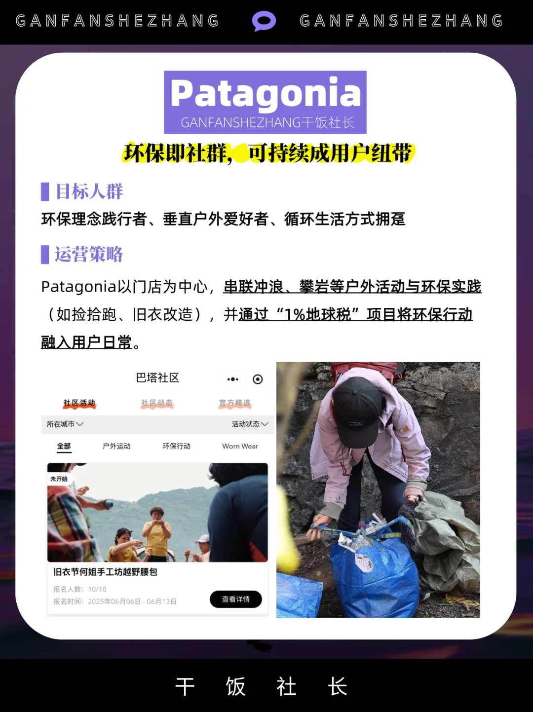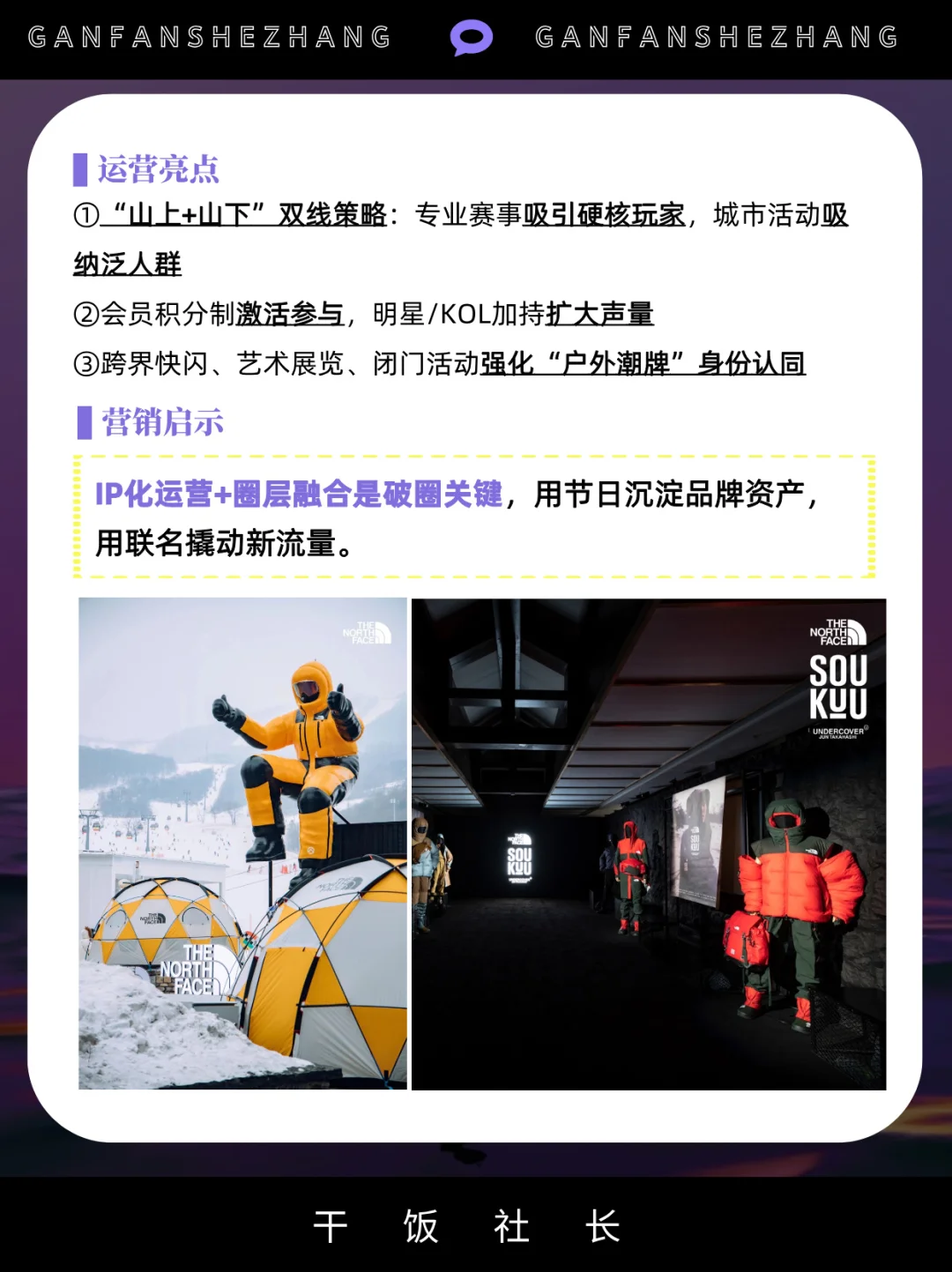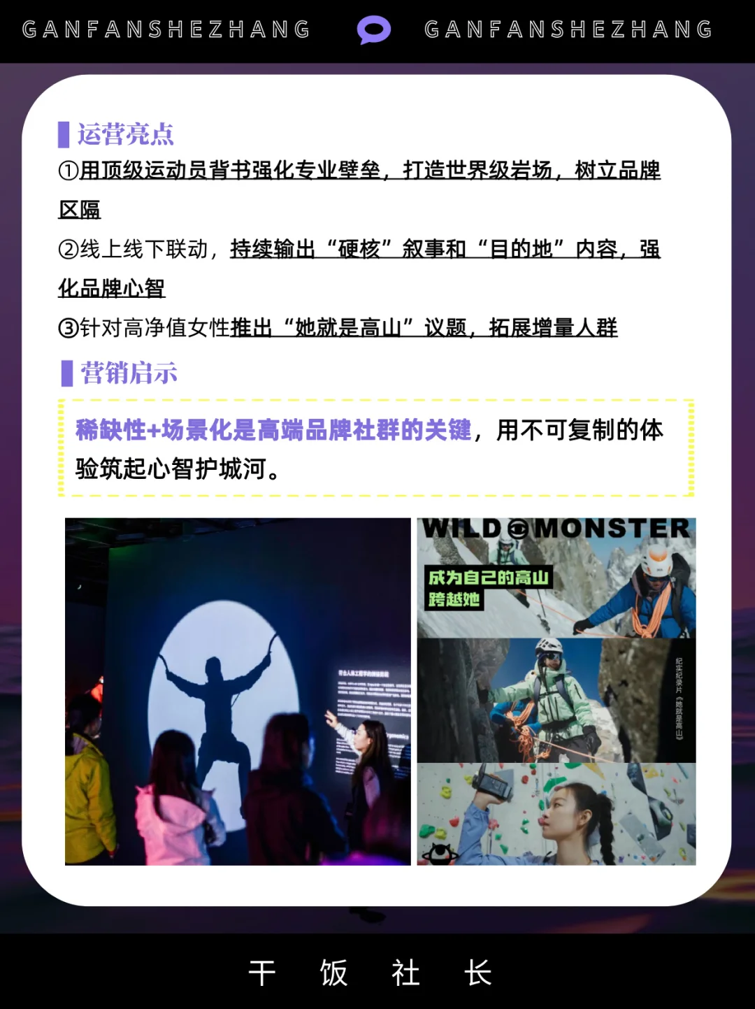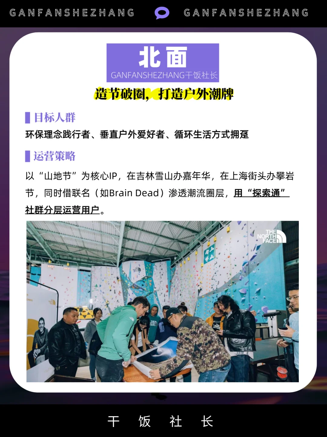社群,是把对品牌感兴趣的用户聚集在一起 借社群的身份感认同,提升品牌的用户忠诚度 社群已是存量时代品牌维系用户的主要途径 甚至有些品牌把构建社群提升到战略高度 始祖鸟把“山地课堂”,开进了松赞的绝境酒店 凯乐石的“磐石行动”,一个月办了80多场活动…… 本文通过拆解5大户外品牌的社群策略与打法 看看当下的品牌究竟应该如何做社群? 品牌营销 干货分享 商业思维 社群 营销 户外 品牌