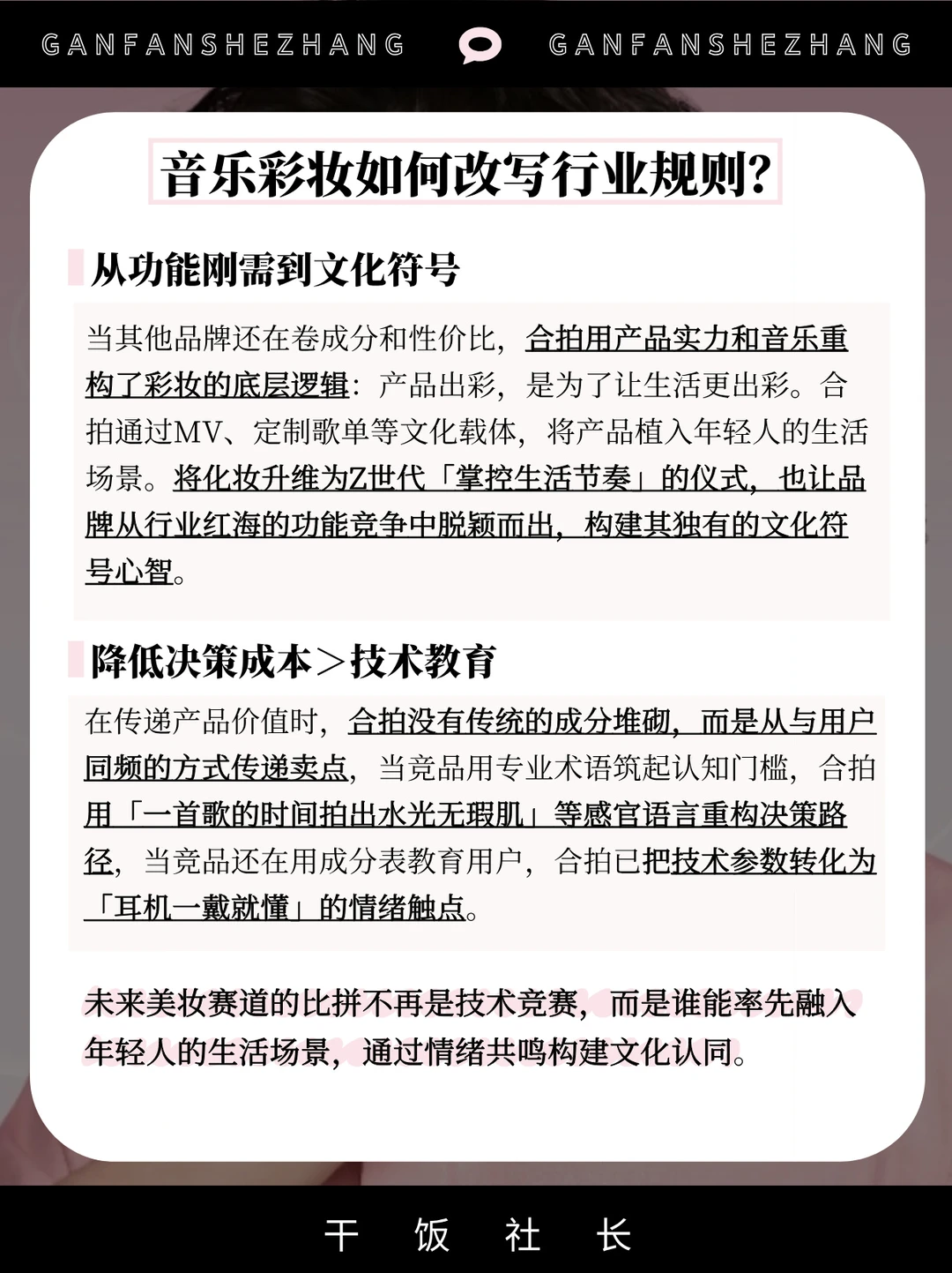 当化妆与听歌的爽感深度绑定,合拍便从红海竞争中突围,完成了从“美妆工具”👉“生活方式”的跃迁🌟。