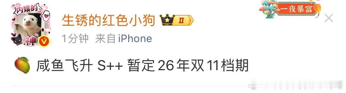 王鹤棣《咸鱼飞升》S++暂定26年双十一档