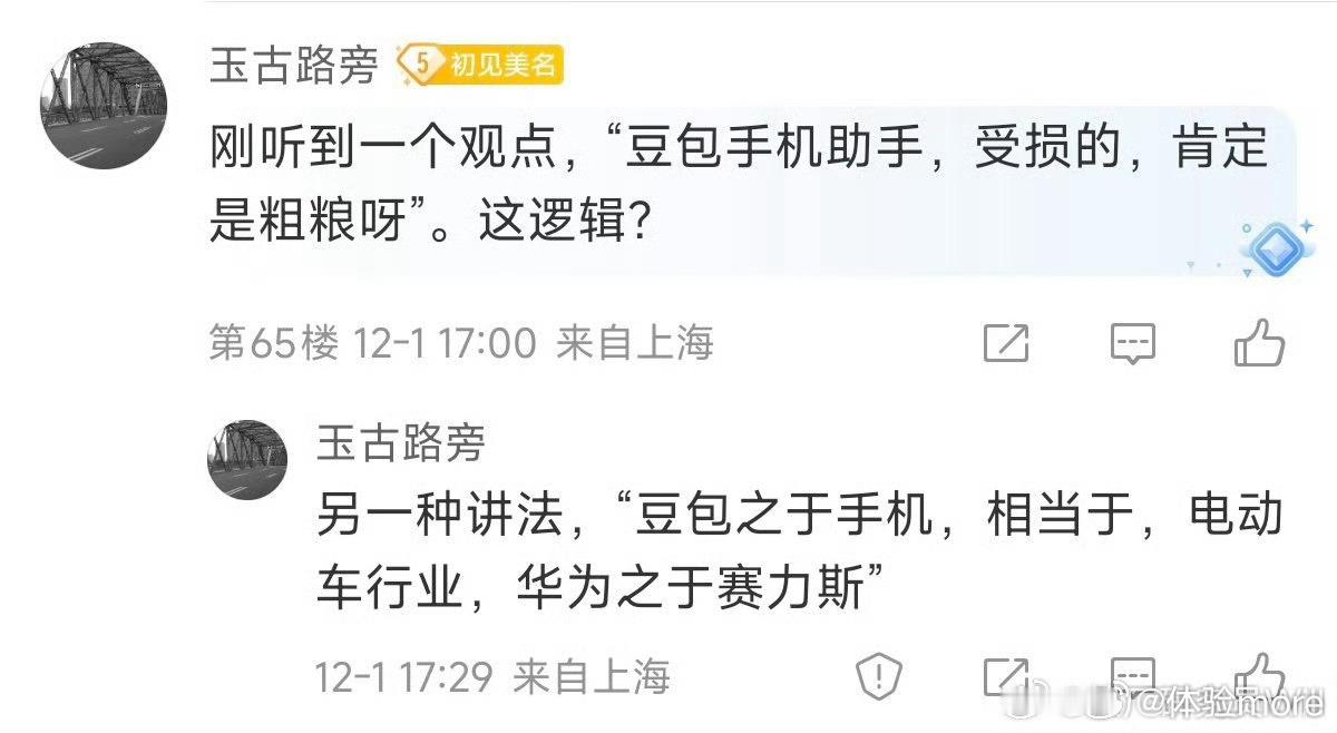 这观点够离谱的。虽然豆包想和手机厂商合作推进手机助手落地,也就是字节想做手机语音助手的供应商,这有两个大前提:一,你得大领先有核心优势,二,手机有好用的AI语音助手是购机TOP选项。现阶段这两个前提一个都没有。头部手机厂商的语音助手与豆包展示出来的操作手机标准版体验是差不多的,像比价下单、订餐厅、屏幕记忆都是可以的,荣耀OPPO都有相关展示。另外一个操作手机Pro模式,可能会更领先一些,也得看实际测试。另外现在手机的AI语音助手重要性大于电车的智驾么,是购机TOP选项么,你日常使用频率高么?华为乾崑智驾能做供应商是软硬一体,既有算法又有硬件,汽车厂商有很多,没有自研能力的就有需求。手机行业完全相反,国内手机TOP5厂商+苹果占据9成以上的份额,都有自研能力,也不会把灵魂交给别人。