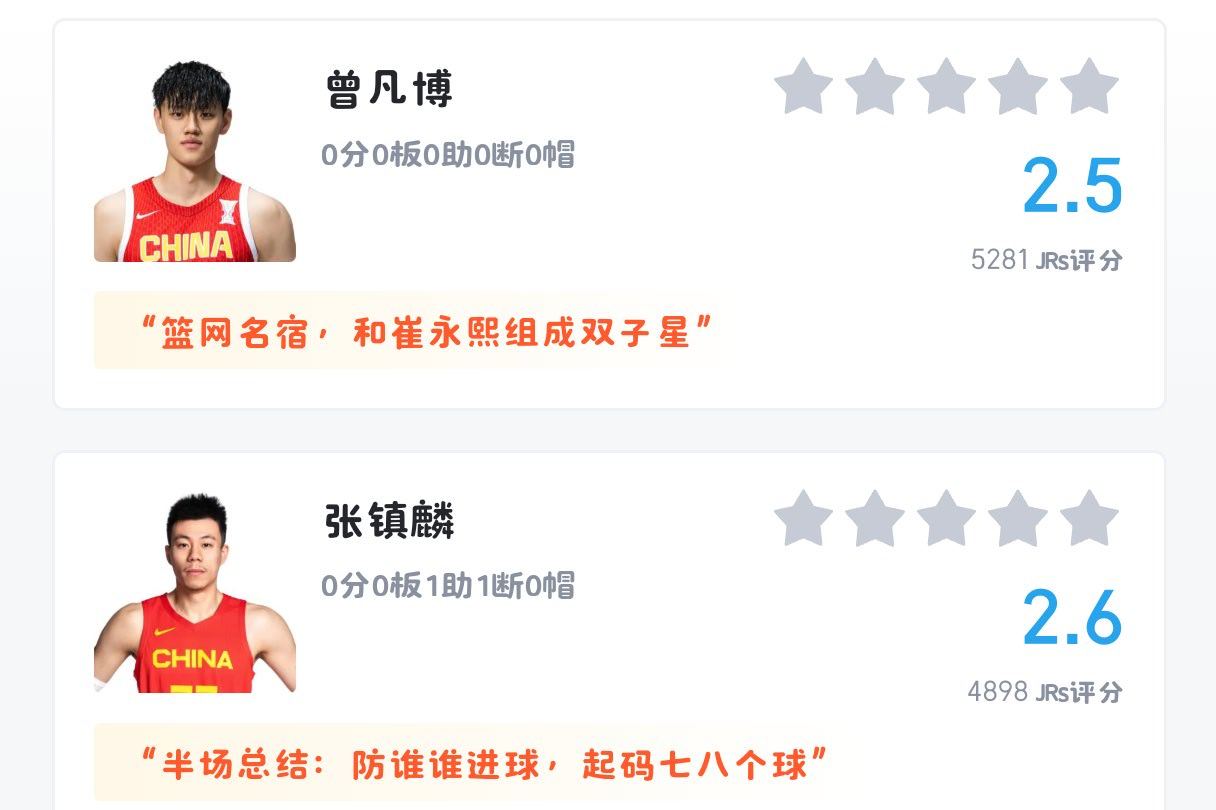 中国男篮vs韩国男篮标记一下,三节打完他俩是这么个评分CBA