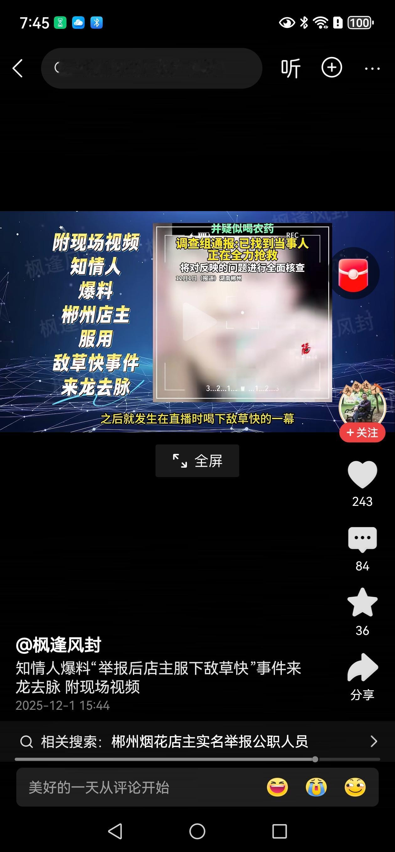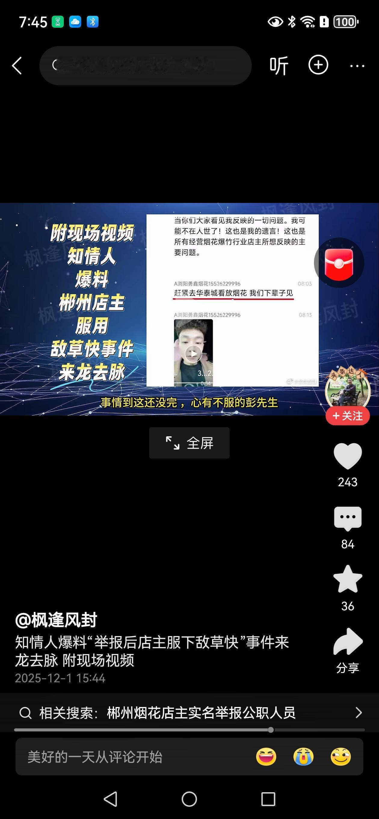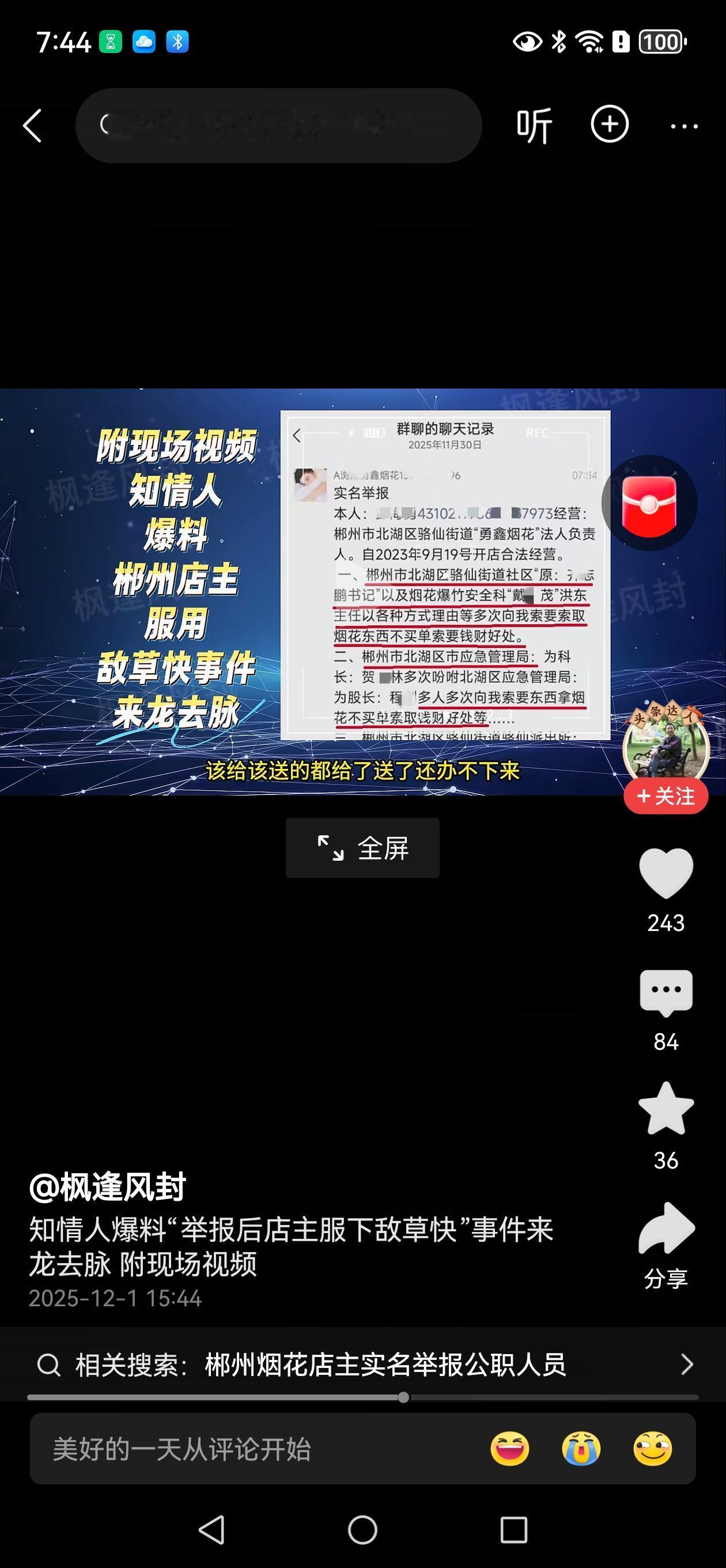 深喉者爆料郴州烟花爆照内幕。 事件的起因是,彭先生经营一家烟花爆竹店,马上要过年了,其进了1000万的货,打算过年大赚一笔。 可售卖烟花的经营许可却迟迟办不下来,该找的人也找了,礼物也送了。 迫于压力,彭先生先是点燃了烟花,造成爆炸,然后再实名举报了对他吃拿卡要的公职人员,最后在直播间喝了农药,并留言:来世再见。 事后,彭先生被警方找到,并送到医院抢救,地方上也成立了调查组,彻查此事。 对这事,你怎么看?你觉得是公职人员的错,还是彭先生太激进了?