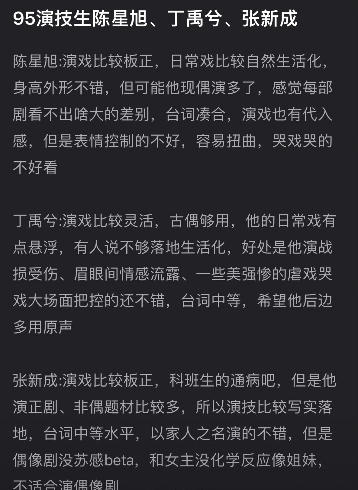 张新成 陈星旭都是以前就公认的演技派,丁禹兮你们觉得呢