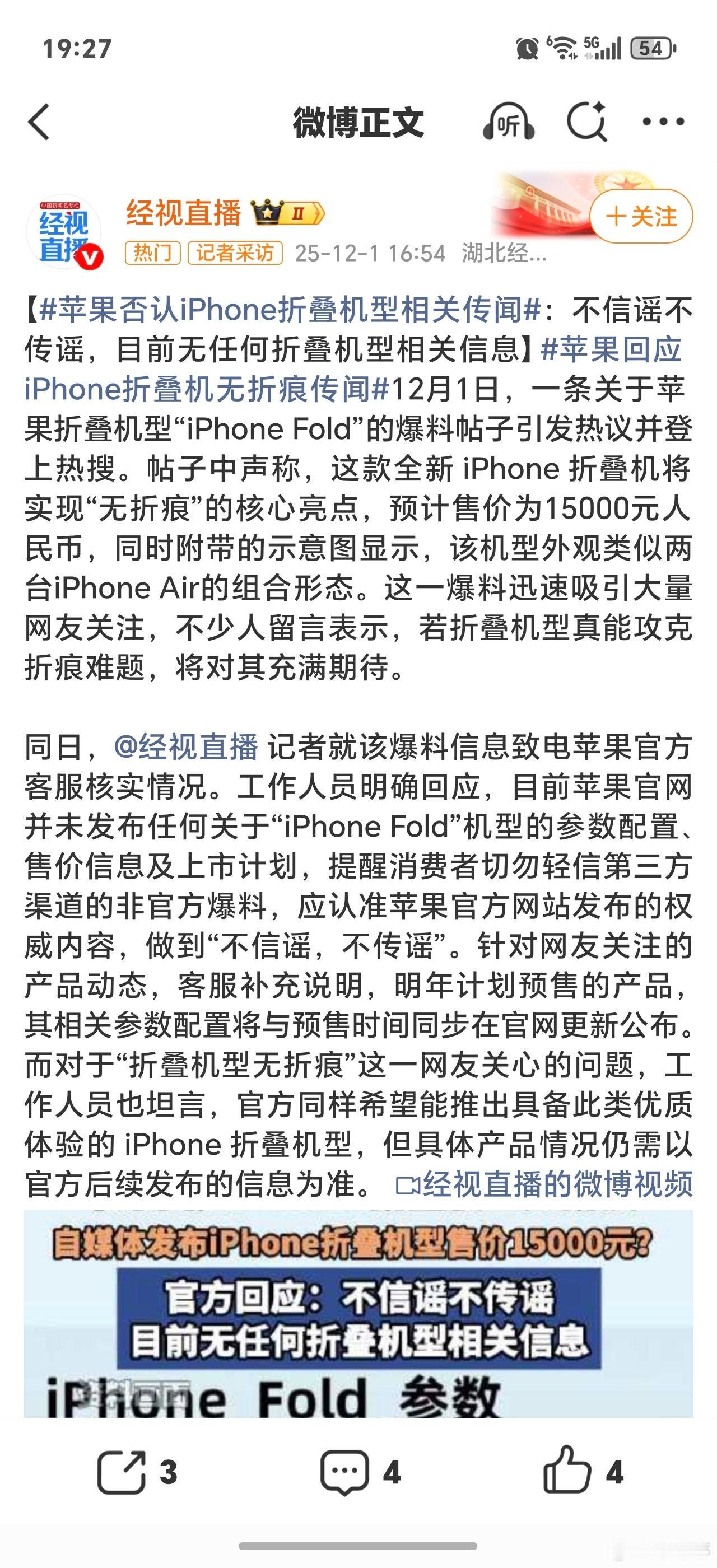 苹果否认iPhone折叠机型相关传闻苹果官方否认折叠机型传闻且未发布相关信息,但供应链消息称已攻克无折痕技术;这就有意思了,做估计是是要做的,不过变数还是有的!大家期待果子折叠屏吗?