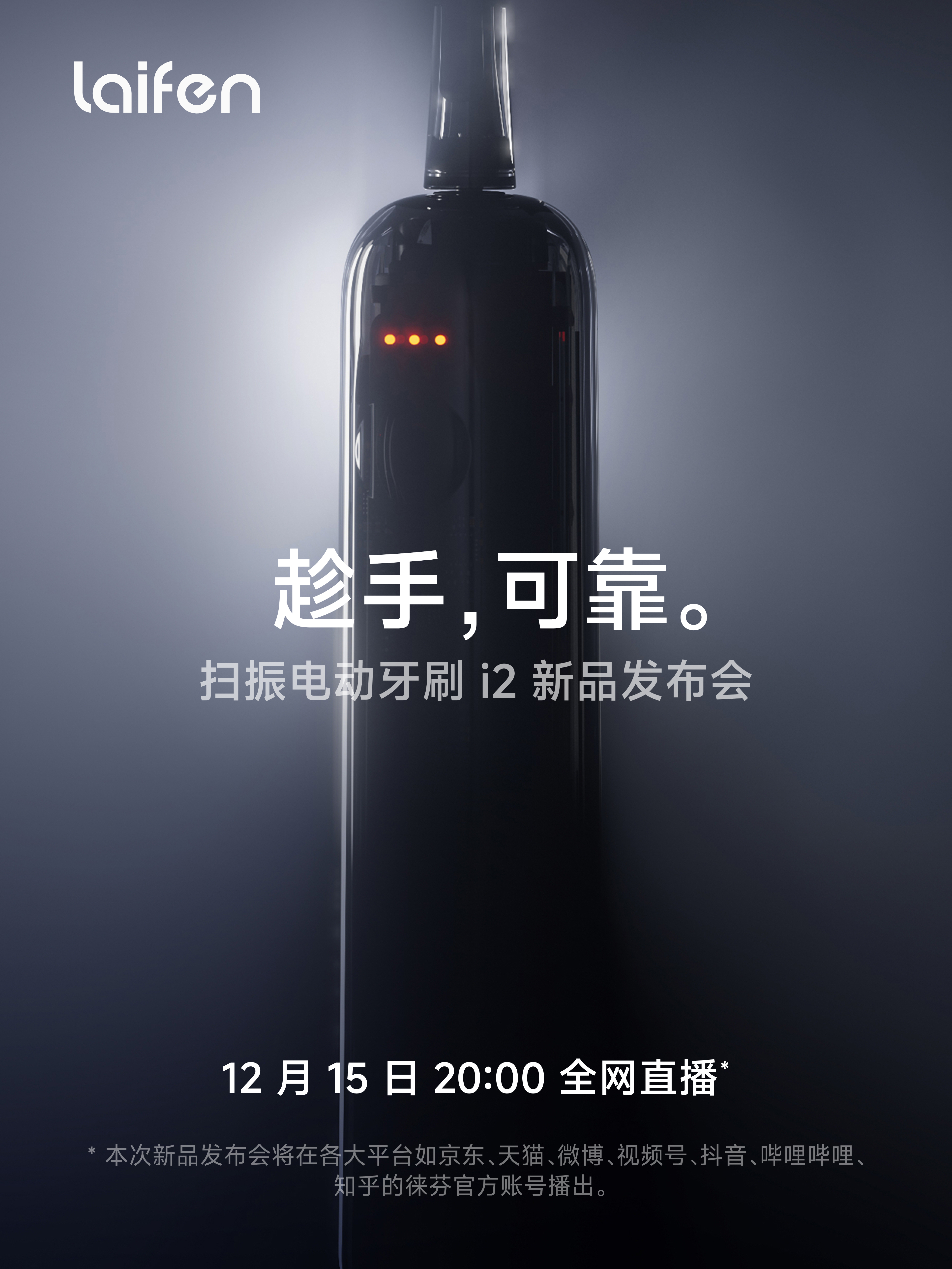 徕芬扫振电动牙刷i2来了!12月15日发布,我先给大伙测一下