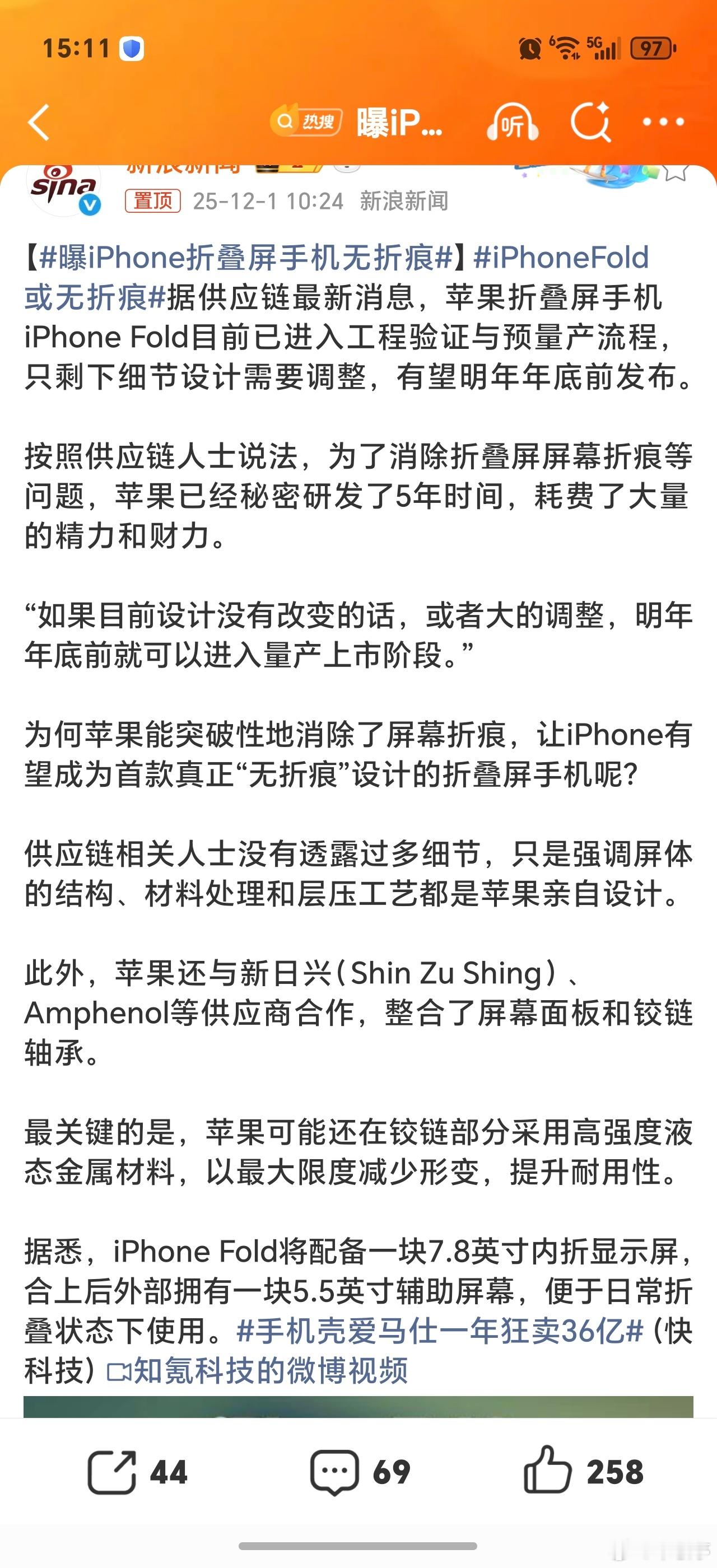 曝iPhone折叠屏手机无折痕iPhone 折叠屏能做到屏幕无折痕?大家觉得真的假的?目前而言,所有折叠屏没有做到这点的,因为物理结构在这里,如果苹果做到了,那真是大突破!