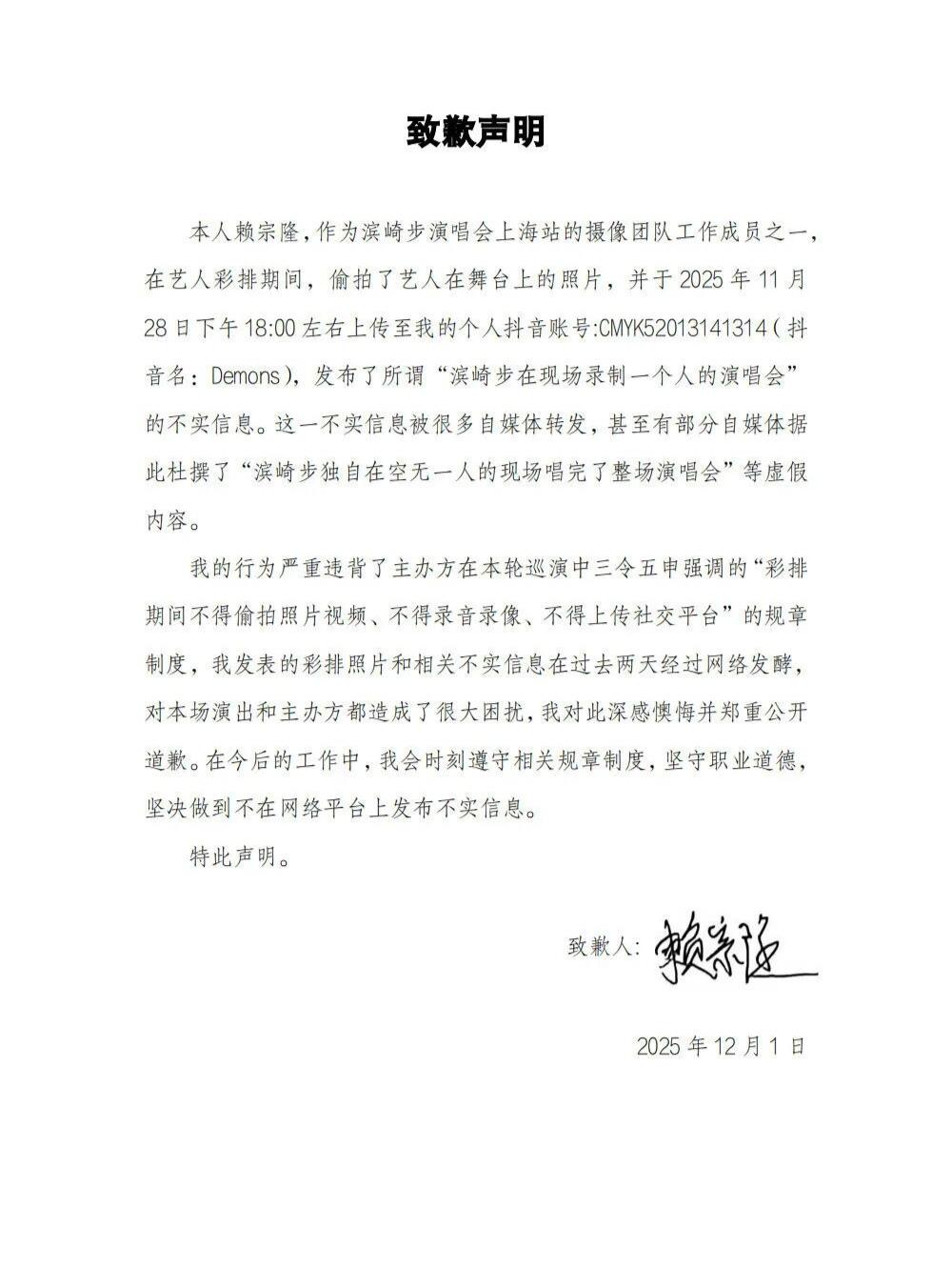 造谣者太可恶了,滨崎步“一个人的演唱会”信息不实,系彩排期间被偷拍!摄像团队人员公开致歉!