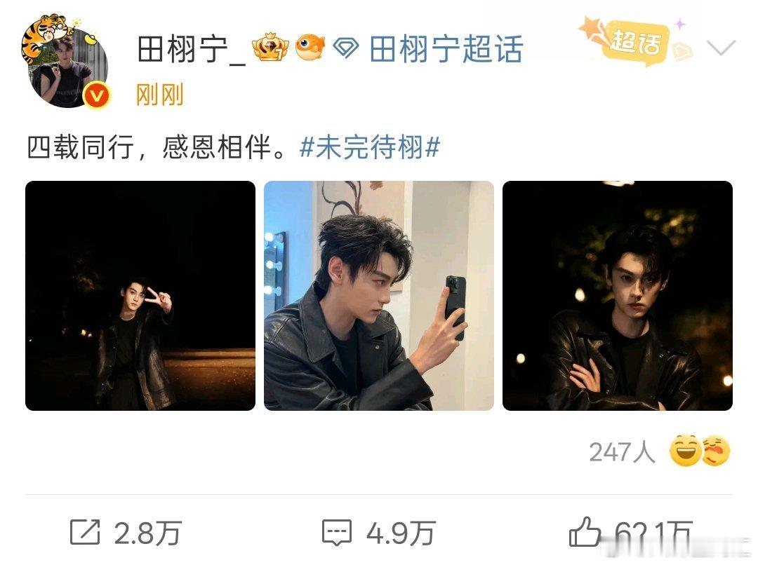 田栩宁出道4周年发文田栩宁发文庆祝出道四周年田栩宁发文庆祝出道四周年!!
