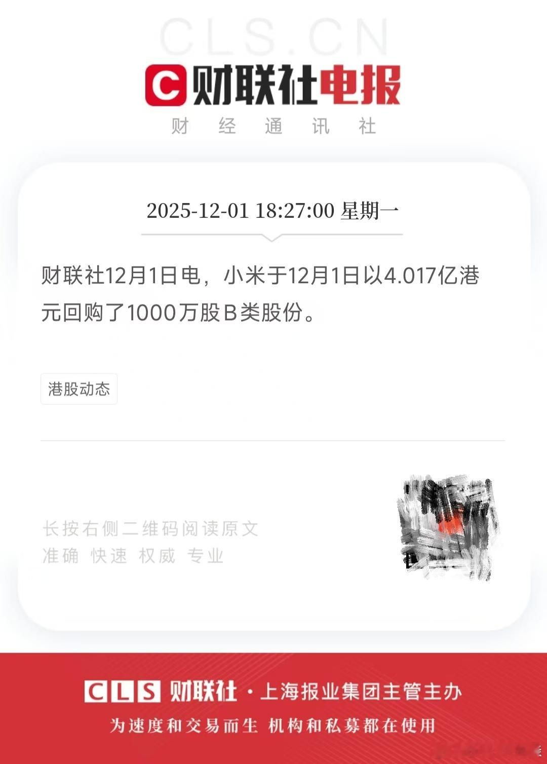 今天小米又回购了1000万股,花了4亿。上个月有些机构做空太哈人了,我那个成本都有点撑不住......不过这几次回购对小米还挺有信心的,公司自身有信心,股民才有信心,加上小米汽车交付量一直上涨,空头们不一定坚持得住。