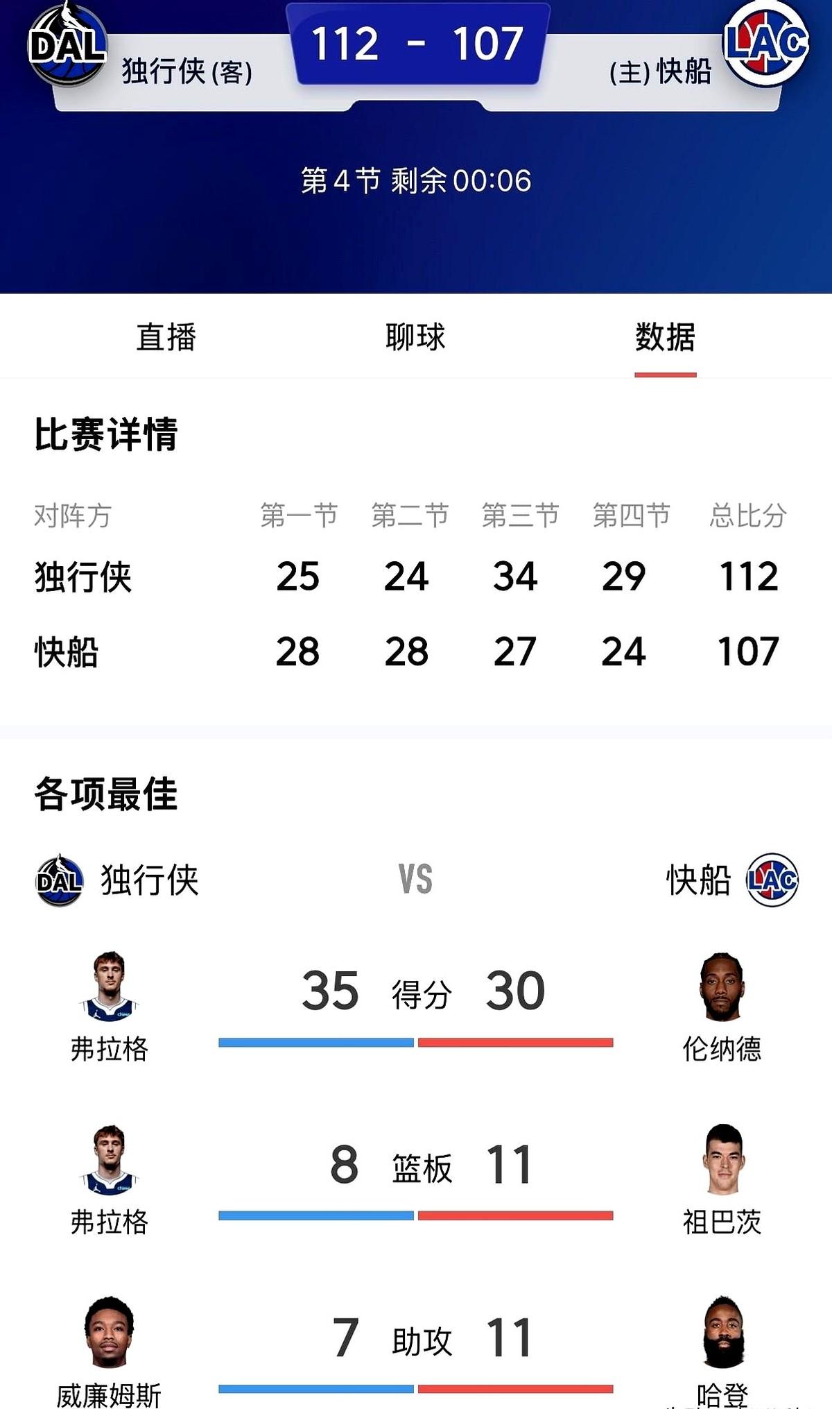 快船这球输得是真憋屈。你说对面独行侠还是背靠背作战,而且核心浓眉都没上场,结果快船居然在最后一节被人翻盘了。 更气人的是,还让独行侠那个叫弗拉格的新秀一个人砍了35分,搞得伦纳德那30分都成了空砍。这一下就四连败了,感觉今年的船已经不是沉不沉的问题,而是根本就没底。 这支球队本来是冲着冠军去的,把未来的选秀权都投进去了,根本就没给自己留摆烂这条后路。现在倒好,赢不了球,又没有摆烂的资格,被迫陷入了这种尴尬的境地。这支快船,真让人不知道该说什么好。