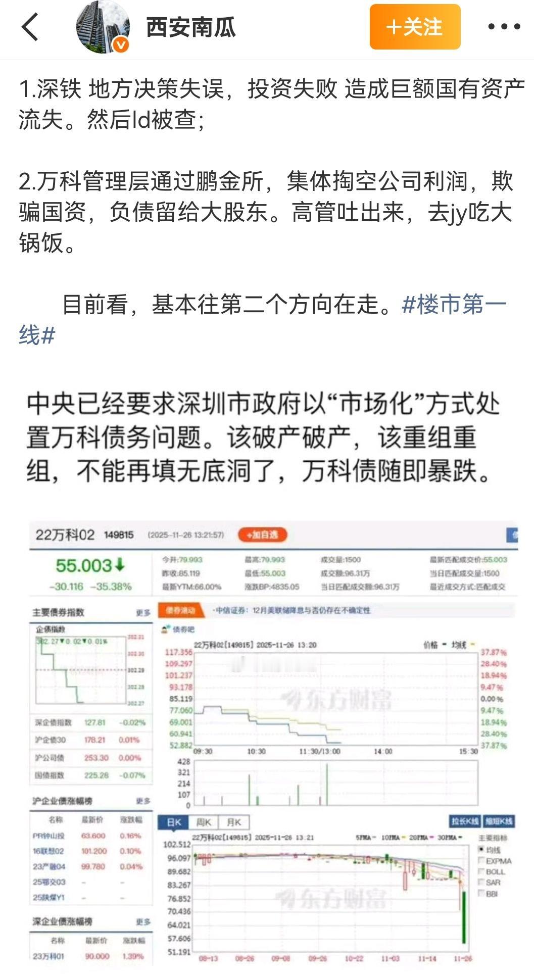 穷庙富方丈,万科版。 (如图所示)曾经中国房地产业的排头兵万科,过去有多风光,现在就有多落魄,万科股债双杀,到底何去何从,前途实在叵测。再雄伟的大厦也经不住内部硕鼠的啃食,当初吃了多少,终归都要吐出来。