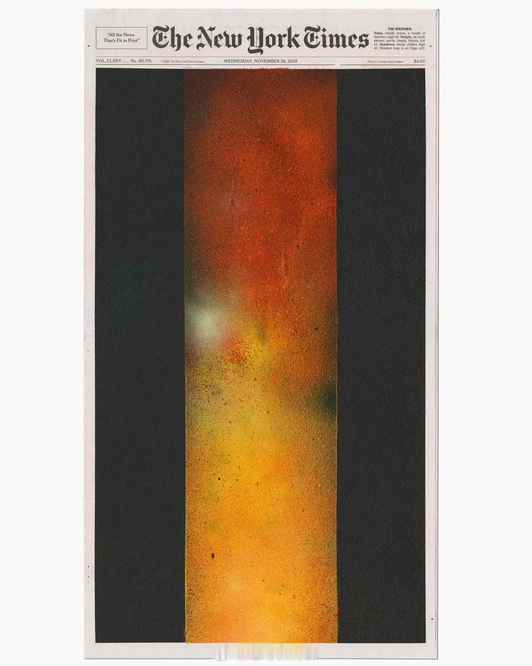 美国艺术家 Sho Shibuya 从“口罩”疫情开始就用《纽约时报》New York Times 头版做画布来绘画。最近的作品表达的是对香港大埔火灾的关注。香港大埔火灾艺术绘画