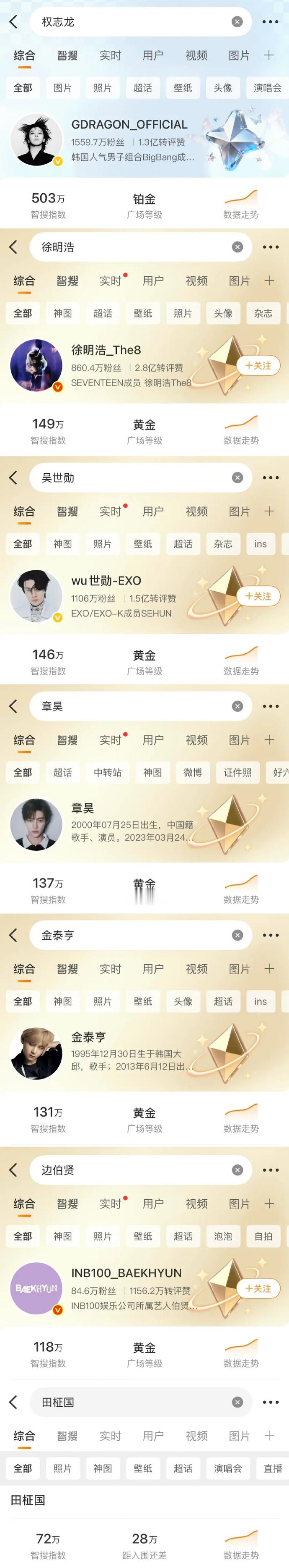 微博各爱豆大名广场等级了女爱豆前五:宋雨琦 IU Lisa 张元英 Jennie男爱豆前五:权志龙 徐明浩 吴世勋 章昊 金泰亨