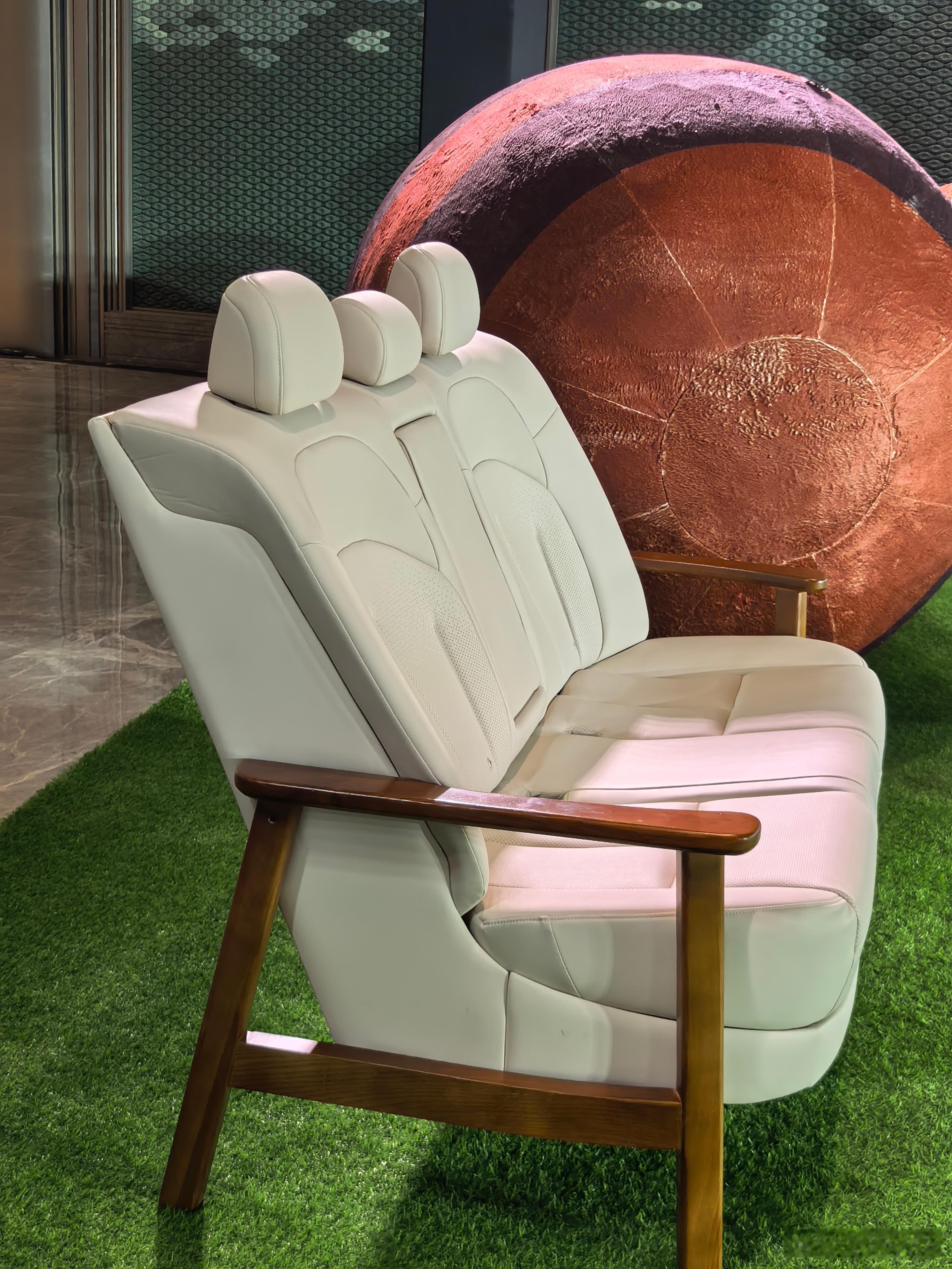 东风日产零压云毯大沙发价值9888元,和之前前排大沙发一样的价,这花一样的钱享受更大的舒适,赚大了史上最舒适的发布会东方日产n6百万级后排大沙发大v聊车