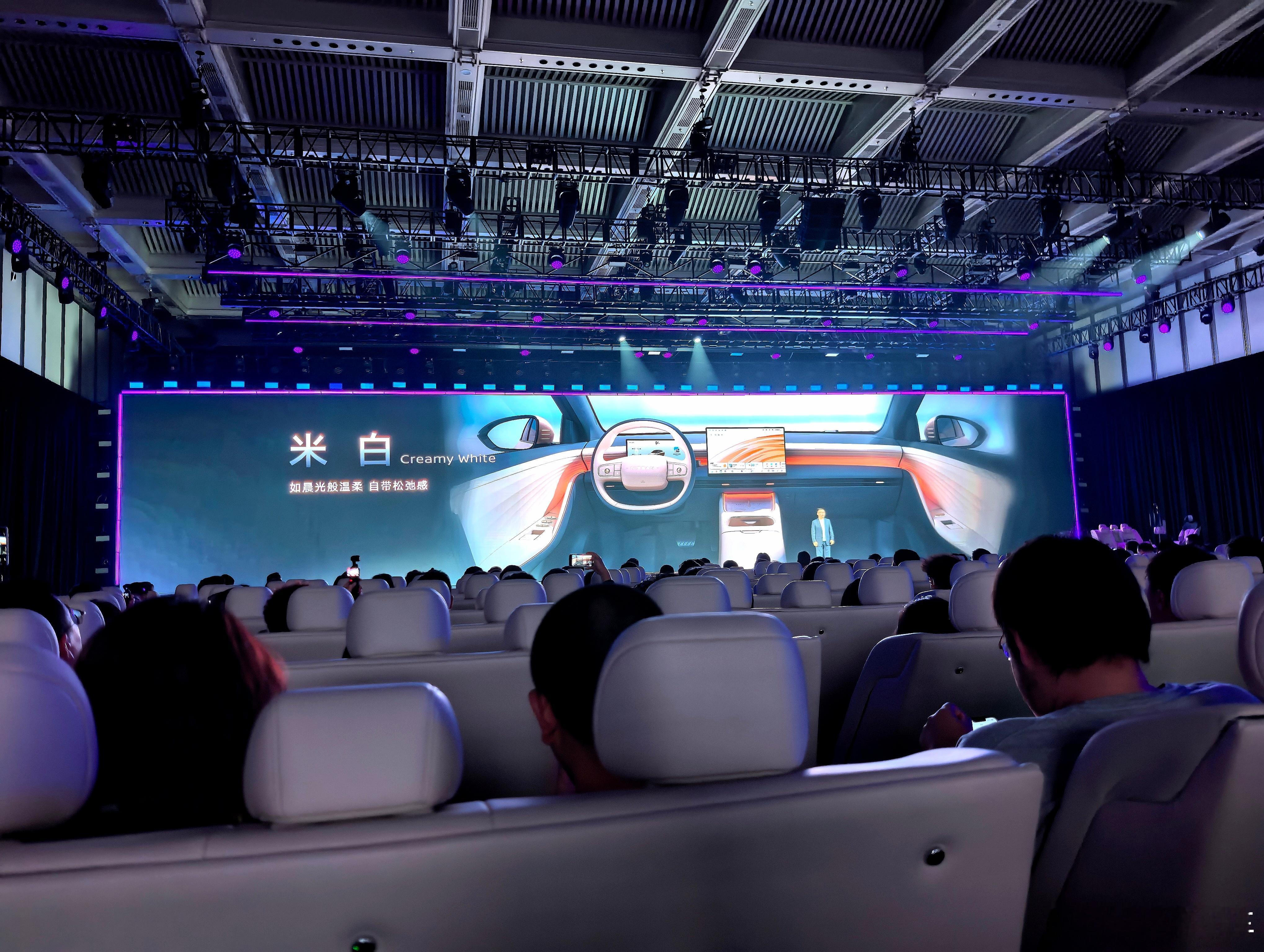 六款车色:日照金、风信紫、 流光银、岩山灰、曜石黑、珠玉白两款内饰颜色:米白、雅黑你们喜欢怎么搭?东方日产n6大v聊车史上最舒适的发布会百万级后排大沙发