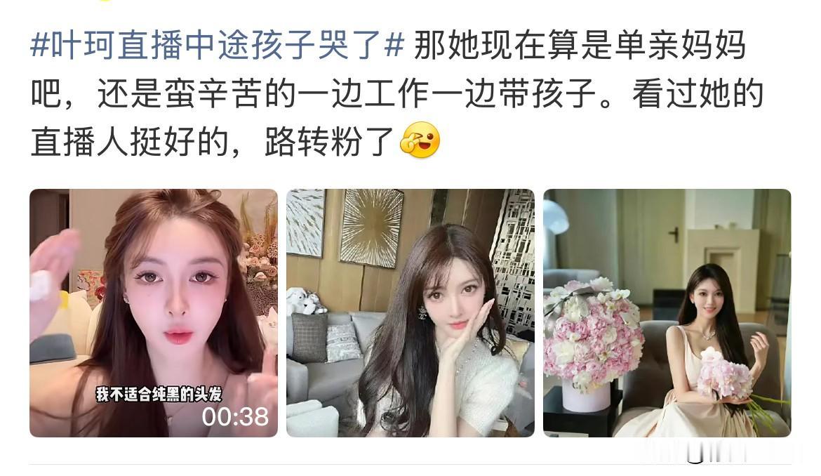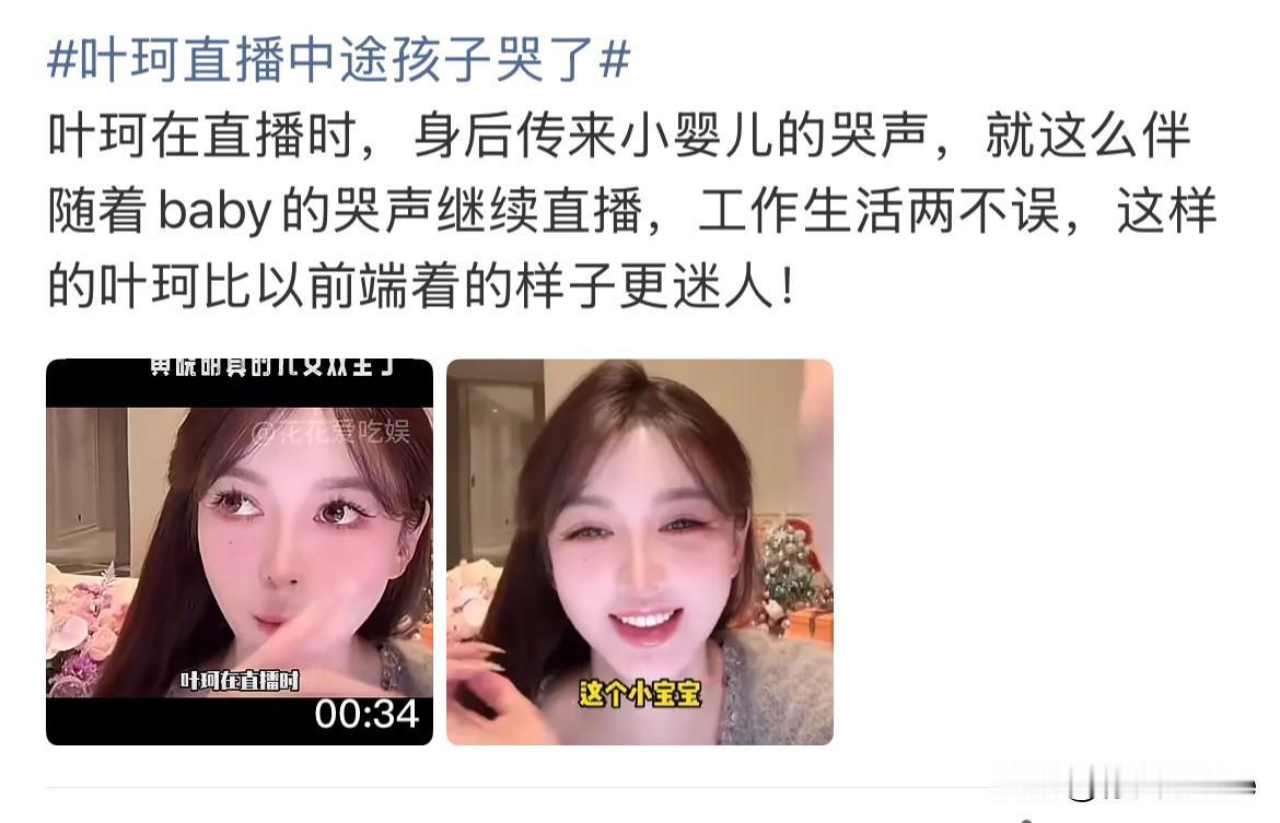 12月1日,叶柯直播出现婴儿啼哭声! 怎么还有人不知道叶柯孩子的爸爸是谁? 原本所有人都以为孩子在黄家,由黄家父母带着,没想到在叶柯身边,这是叶柯复出以来第一次在她身边听到孩子的声音~ 叶柯听到孩子声时笑颜弯弯,孩子身边应该有人带,所以叶柯才可以如此淡定的继续讲解,而不是立刻放下工作去看孩子…… 看到今天有关夸她的通稿挺多的,感觉她又在舆论钢丝线上徘徊~
