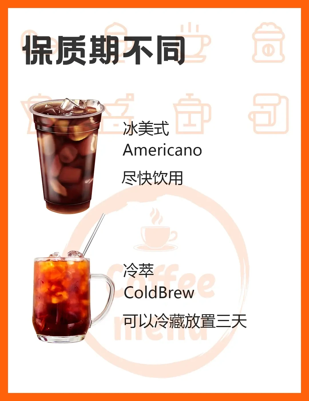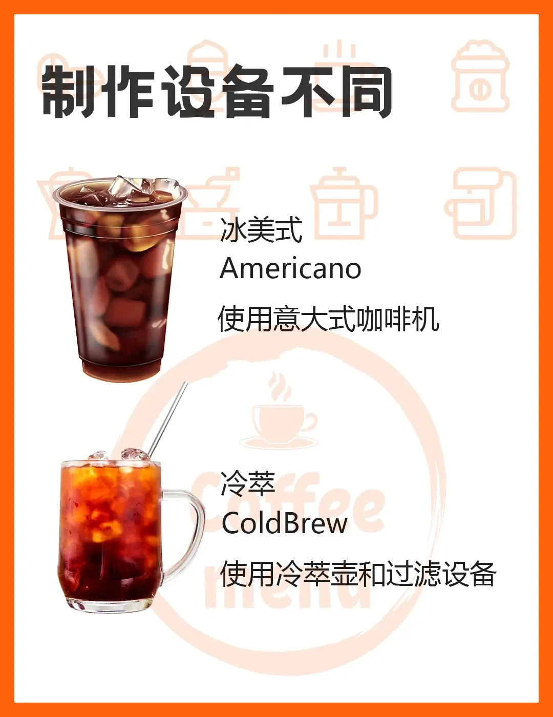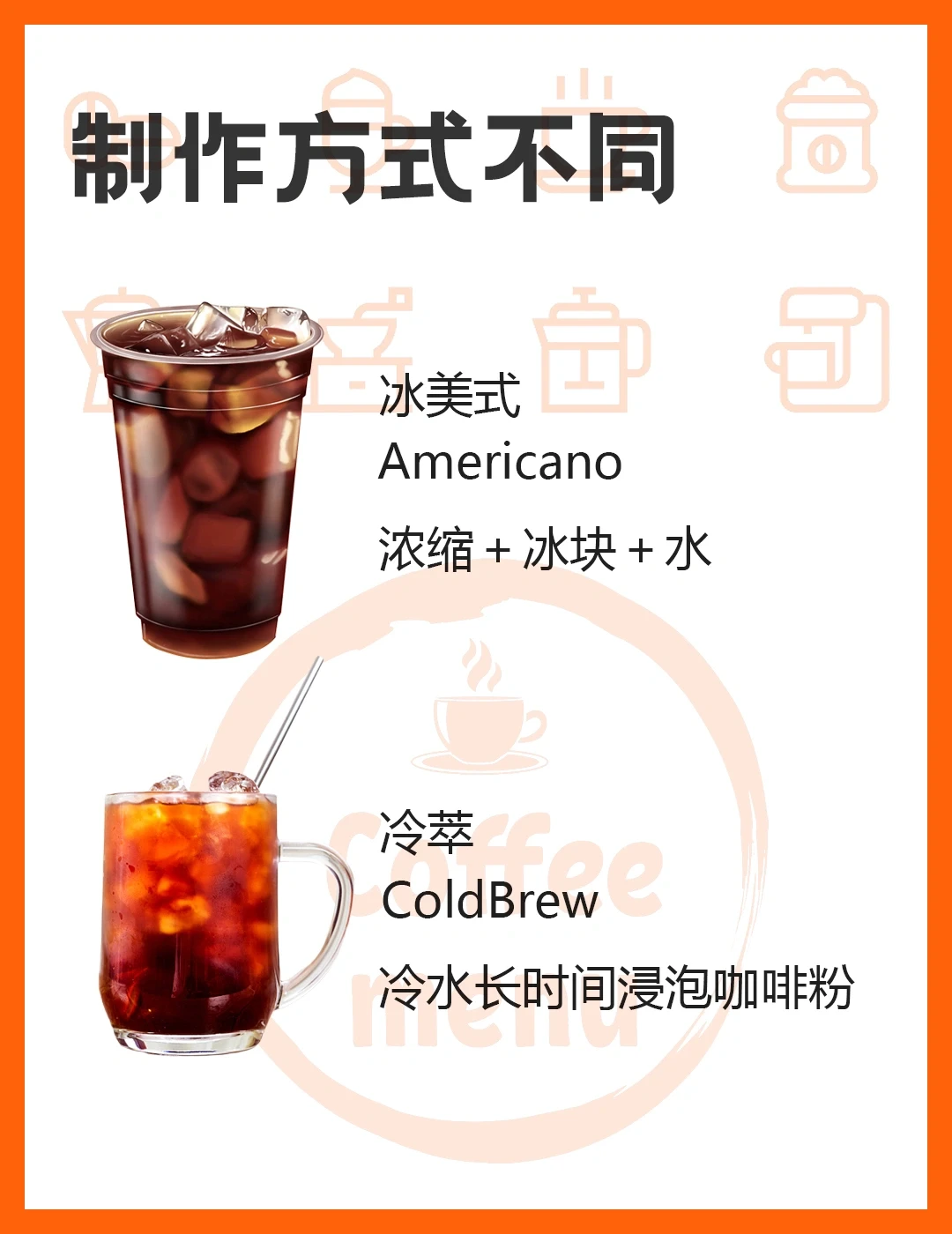 🧊冷萃:冷水长时间浸泡咖啡粉冰美式:浓缩➕冰块➕水