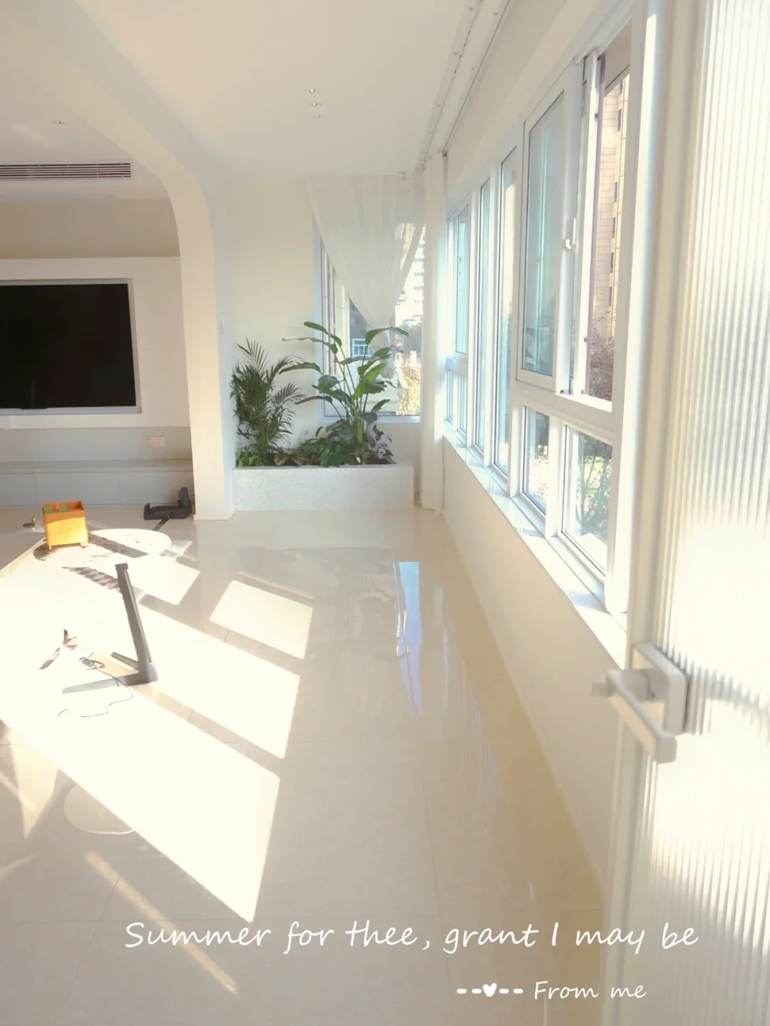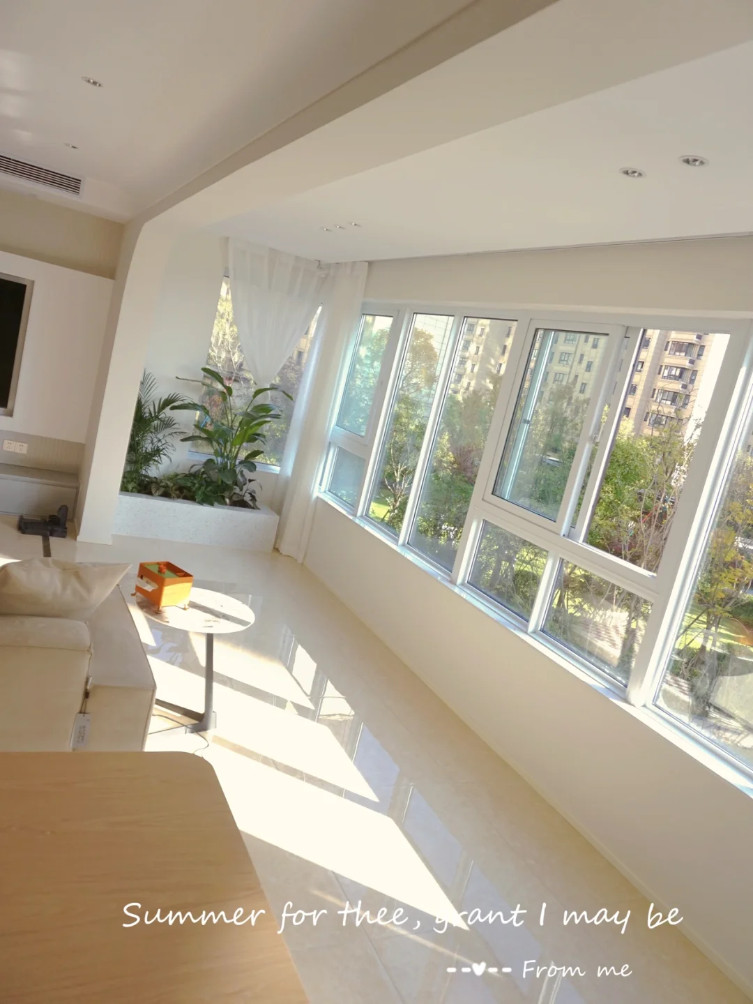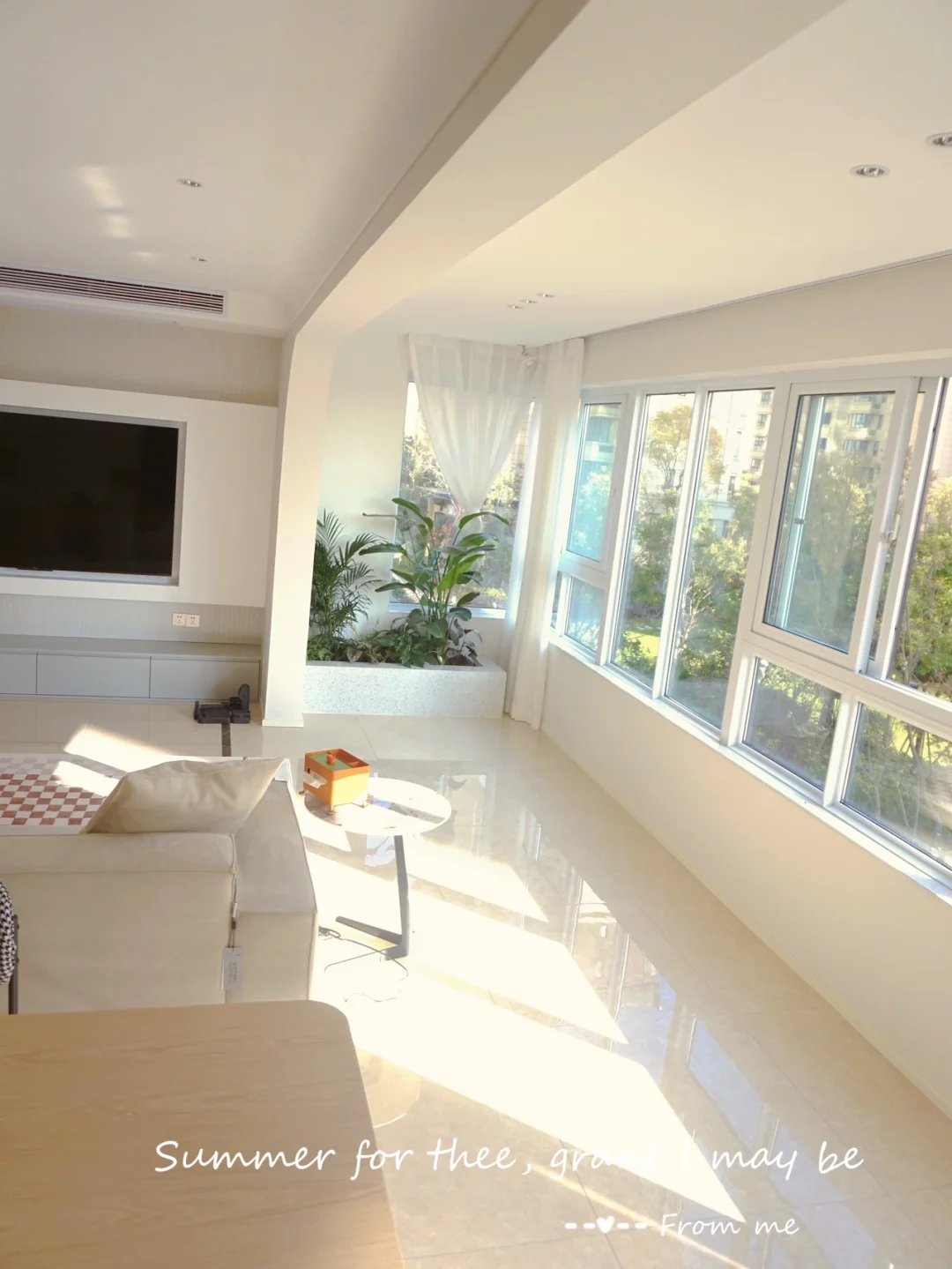 🏷️我家阳台:1.2m*8m 开发商交付时阳台和客厅之间两扇推拉门的,我全部拆掉了,纳入了客厅🛋️ 阳台没有设置晾衣杆,因为2万一平的房价用来晾衣服太贵了! 事实证明当时真的好明智,冬天可以坐在大阳台晒太阳好舒服!另外我的阳台花池也打造好啦,绿色的看着真养眼! ㊙️那么,我家衣服晾在哪呢?下篇告诉你[害羞R]