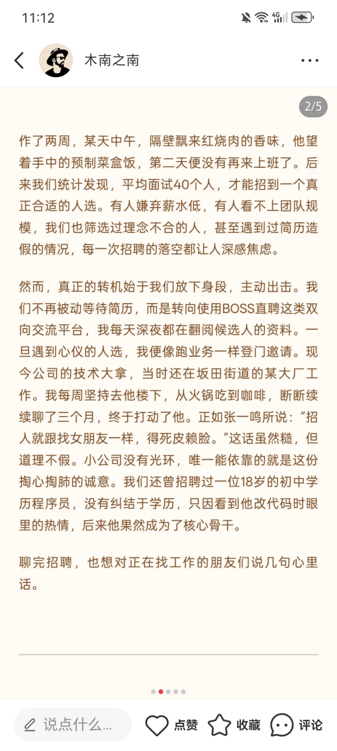小公司招人不易。有人嫌弃薪水低,有人看不上团队规模,我们也筛选过理念不合的人,甚至遇到过简历造假的情况,每一次招聘的落空都让人深感焦虑。