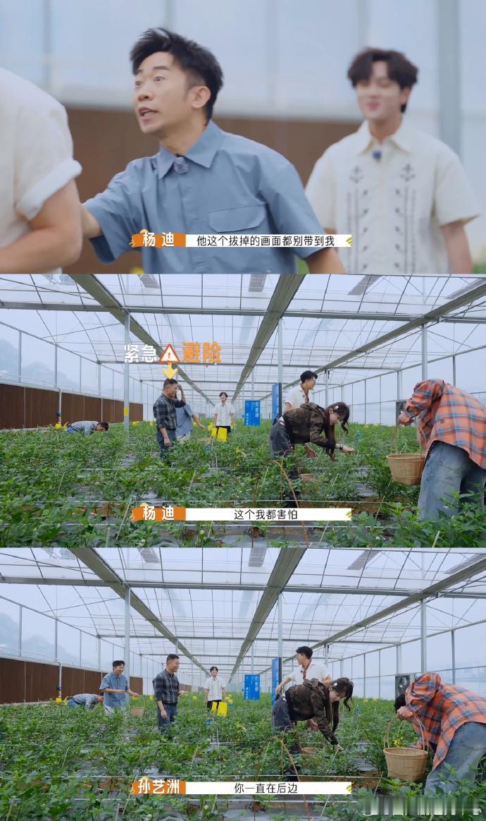 杨迪真的是笑死人了…… 不得不说,杨迪的反应绝对是牛呗了, 就在孙艺洲不小心拔下了一颗辣椒苗,一旁的大叔痛苦的表情不言而喻, 或许是实在忍不住了,说出了一句:“您的这个要批评,这个树好金贵的” 仅仅一句话,直接给孙艺洲给弄尴尬了, 或许杨迪也是感受到了尴尬的气氛,直接来了一句:“艺洲哥,最近不要上网”,还很没义气的表示"不要把自己剪到这个画面了" 这不仅仅搞笑、轻松氛围、还恰到好处的化解尴尬。