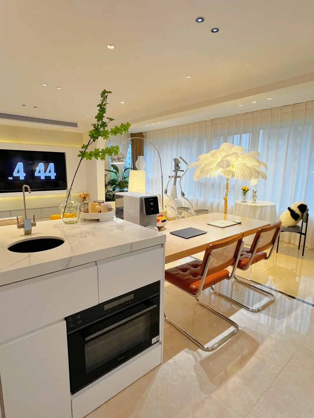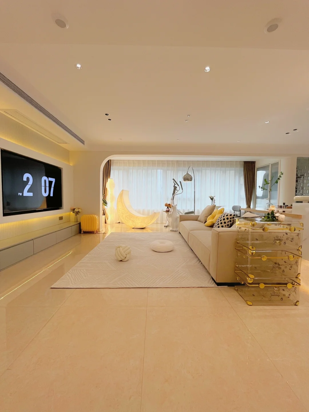 我家套内120平 户型拆改图在最后哦! 装修时几个重要的决定,让我家看起来真的很显大! 分享给大家! 1⃣️砸掉一个房间 客厅变成大横厅 还能有一个大岛台! 2⃣️硬装尽量简单 不做石膏线 不做吊顶 全屋乳胶漆 四公分踢脚线 3⃣️砸掉阳台门 阳台不做门套 简约显大 4⃣️地砖通铺 我家地砖尺寸:80*80cm 亮面暖色 好打理 和我家户型类似的欢迎抄作业[飞吻R]