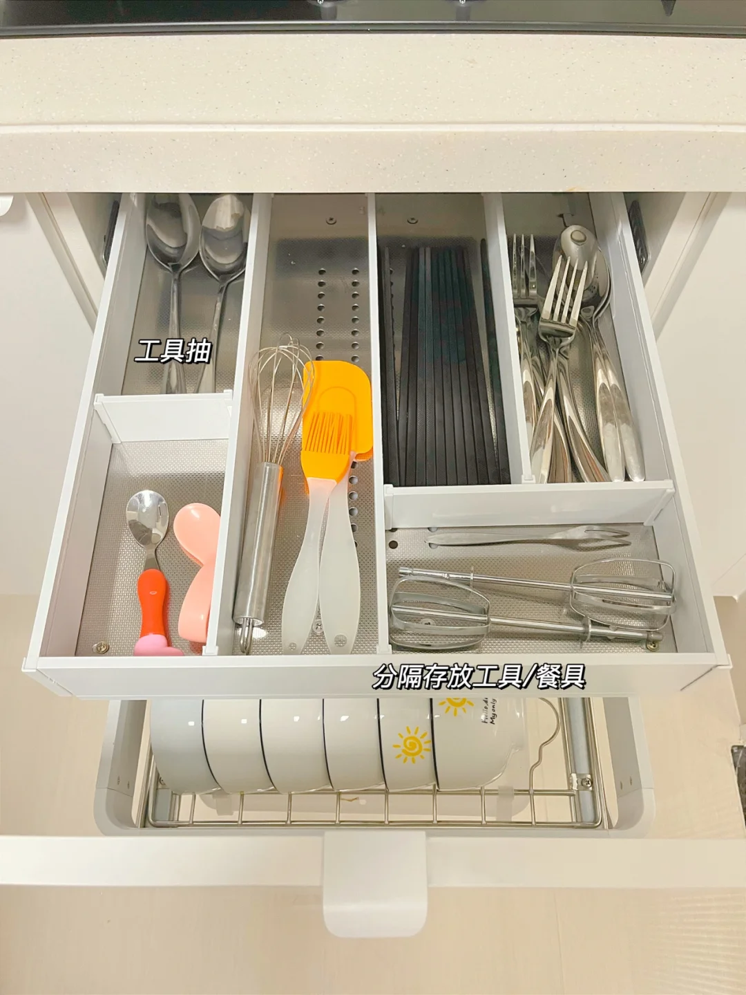顶层是一层工具抽,收纳筷子勺子和小工具