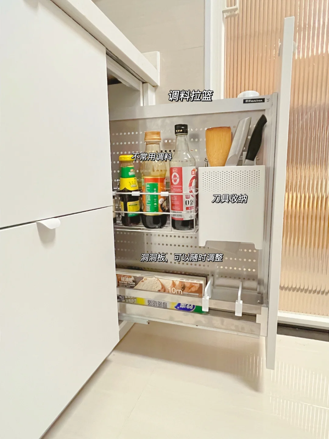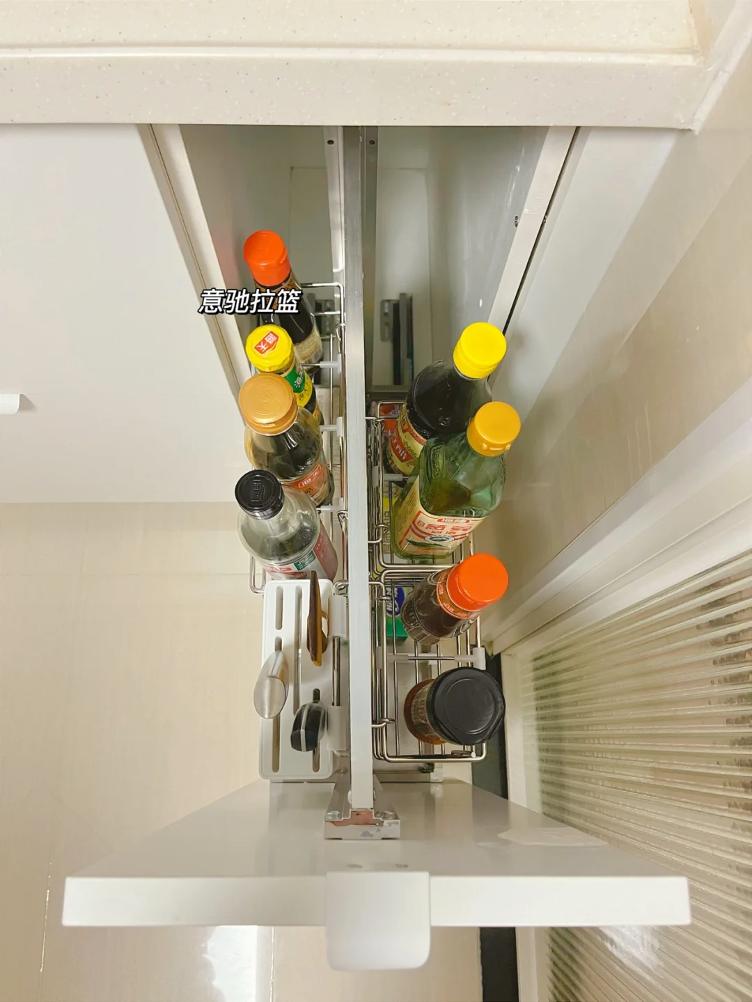 我家原来这个柜子宽度只有25cm 又窄又深 拿取不方便 改成调料拉篮的形式更方便了!
