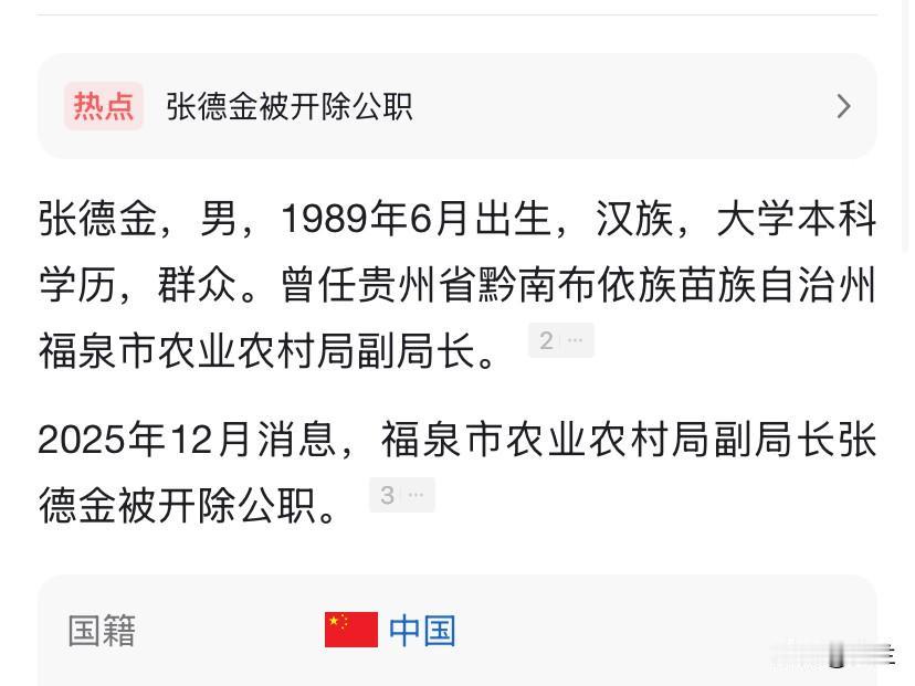 今天贵州福泉市的“89后”张德金又上了热搜 他在福泉农业行业深耕多年 早期从普通职员干起 经过几年的摸爬滚打 2020年12月,31岁的他担任重要岗位 他的前途曾被很多人看好 今年仅36岁的他 本是干事创业的黄金年龄 没想到如今他却上了热搜, 回想他曾在行业活动上侃侃而谈 这种反差实在是让人唏嘘 这也说明了 不管年龄多少 只要做了不该做的事 是不会被放过的!