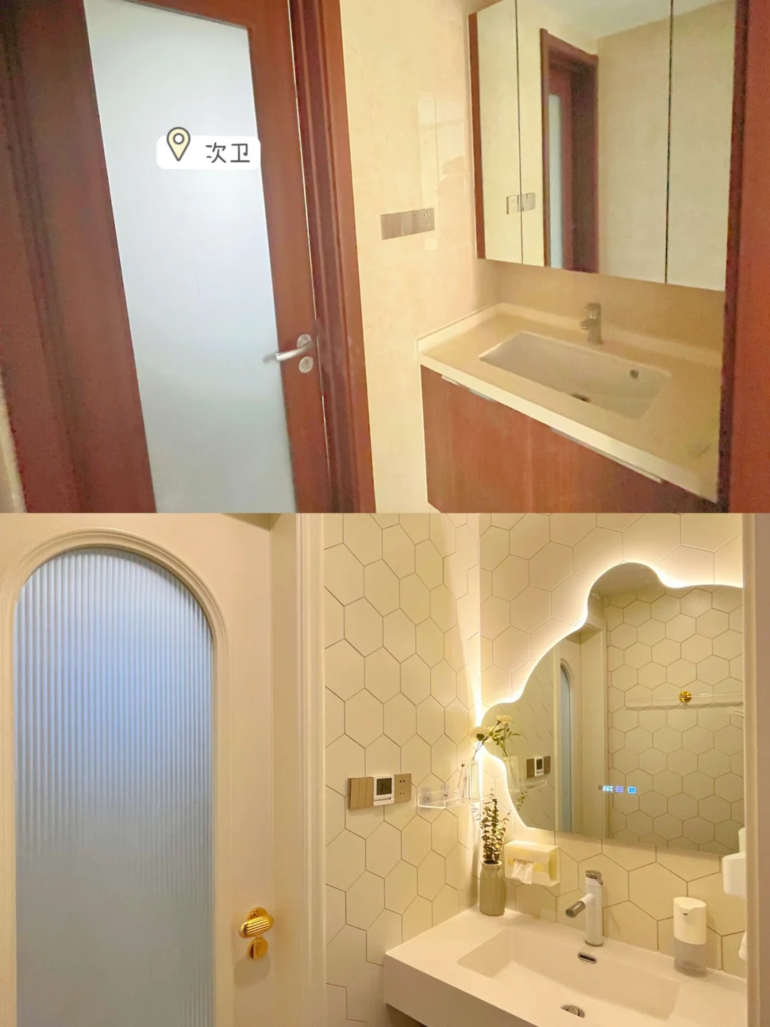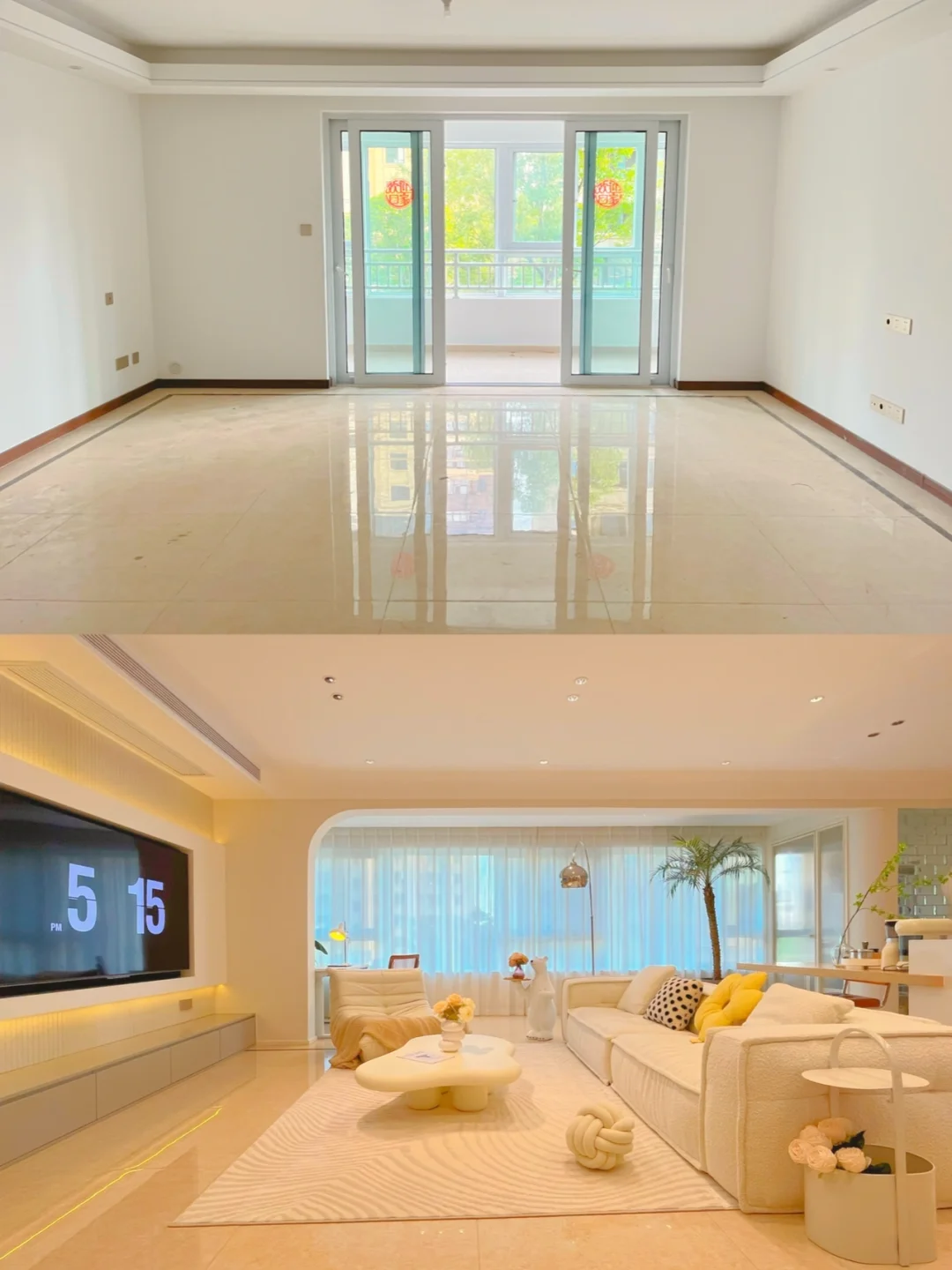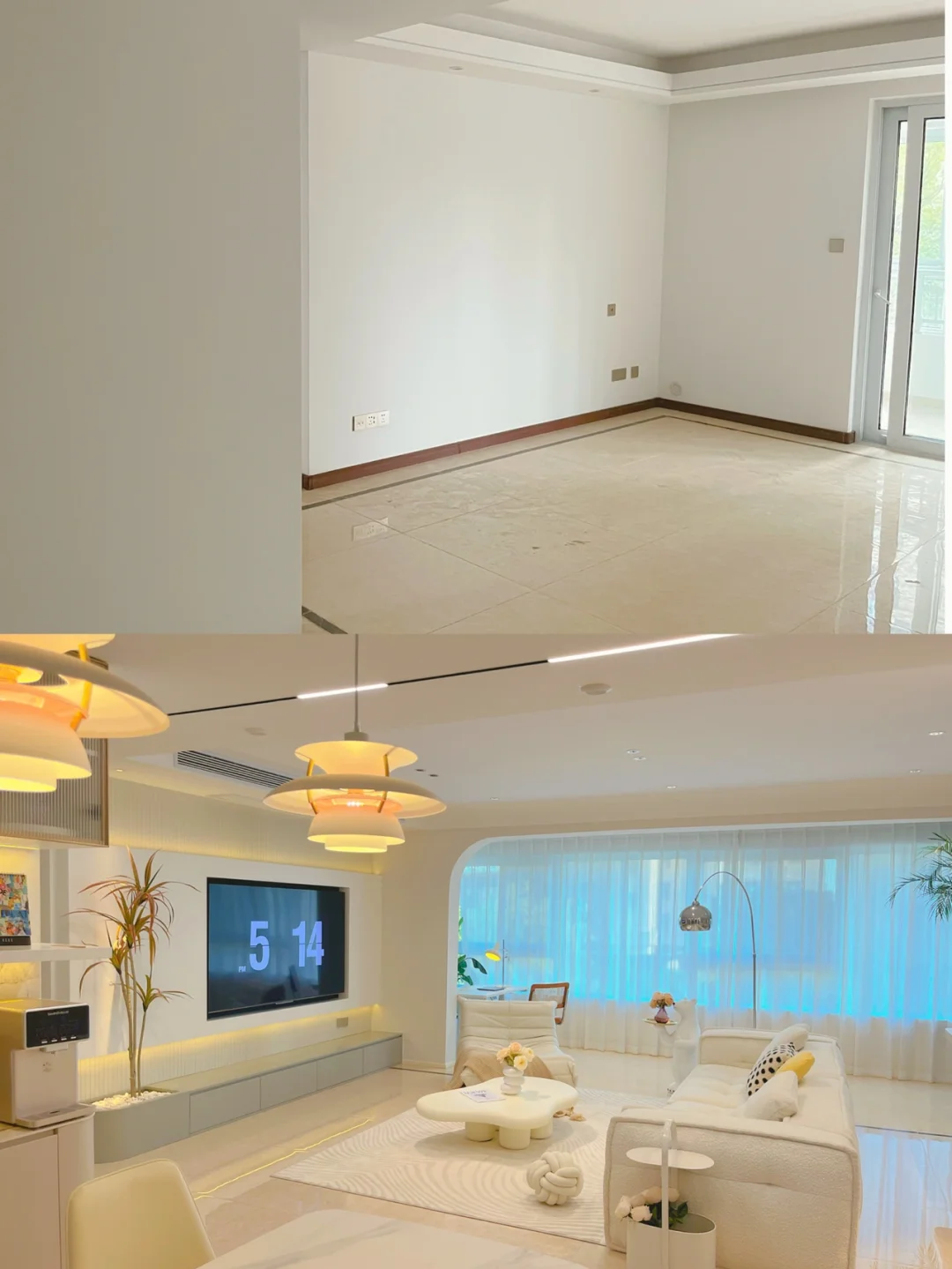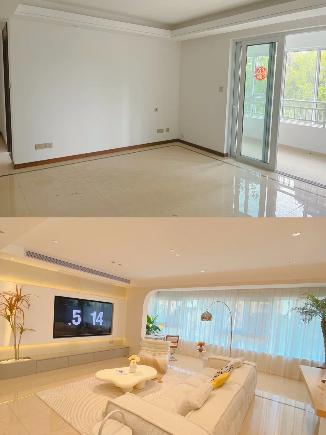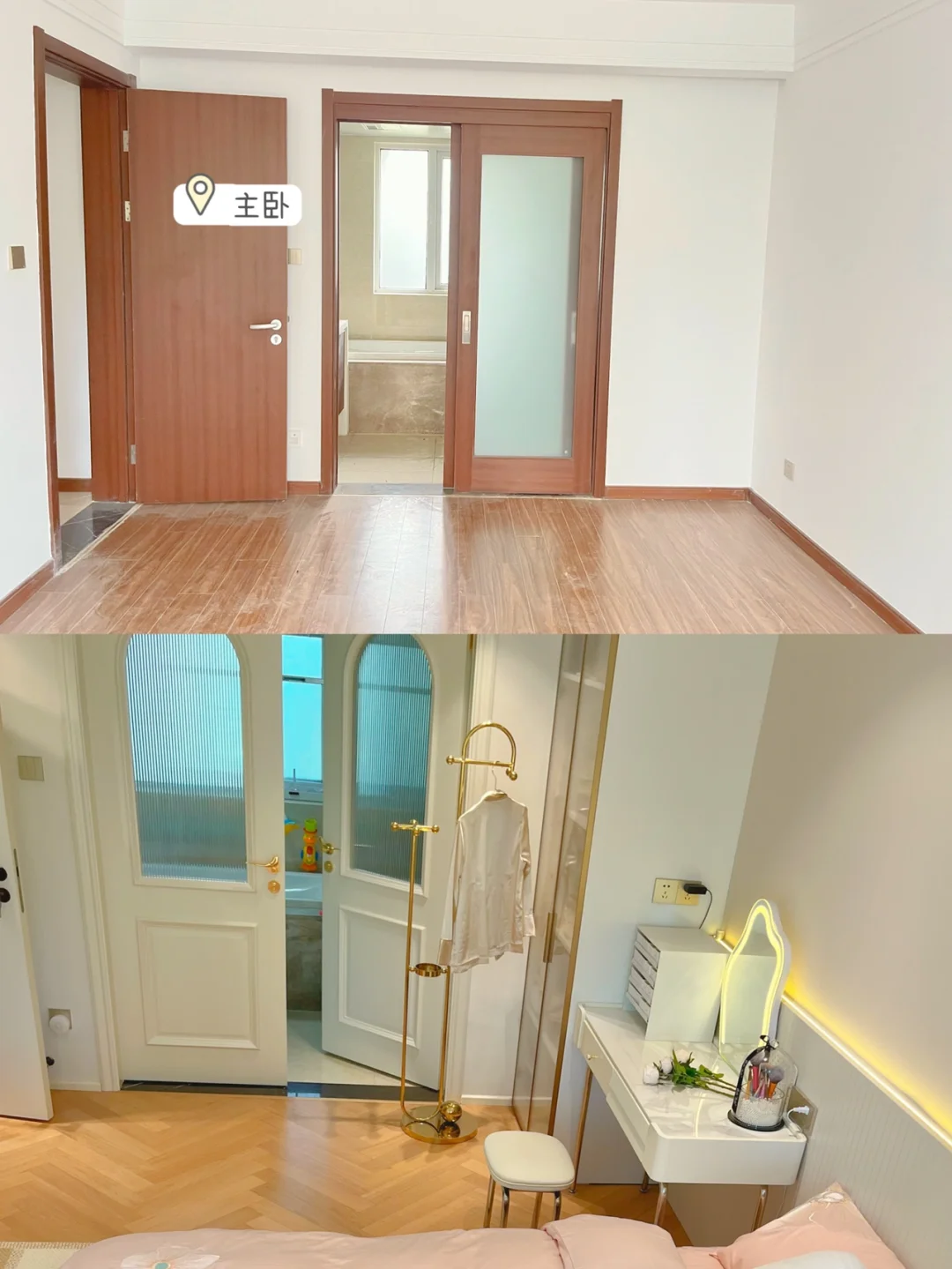 我家是开发商精装修交付的,很多邻居都是全部拆成毛坯房再重新装修,问了一下,个个预算都是4、50。 因为预算不足,又不喜欢土土的精装修,所以就做了局部改造。 硬装只花了4w,但是过程累个半死。 不差钱还是全部砸了重装吧[捂脸R] 主要做的改造: 1⃣️砸了入户右手边的一间房,扩入客厅 2⃣️砸了阳台门,扩入客厅 3⃣️改造了玄关,换成长虹玻璃屏风和悬浮换鞋凳 4⃣️换了卧室和卫生间门 5⃣️砸了卧室地板,换成原木色人字铺