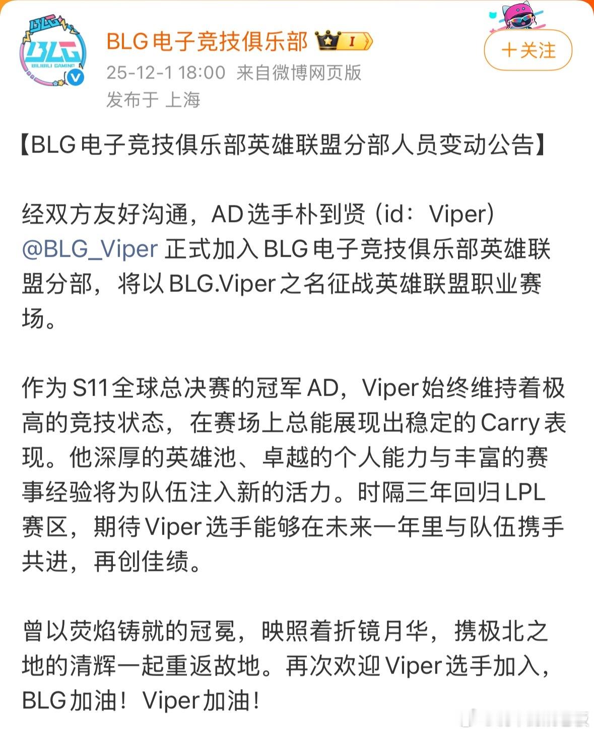 BLG官宣Xun加入blg官宣viper加入 银河战舰正式启航!队魂Xun强势回归,大心脏野核坐镇,敢打敢拼的血性直接拉满!世界冠军AD Viper重磅加盟,下路火力直接拉到顶格!朱开都认证的"媲美巅峰IG"阵容,这配置谁看了不喊一句BLG冲冠稳了?期待新赛季锁血翻盘、双杀强敌的名场面!