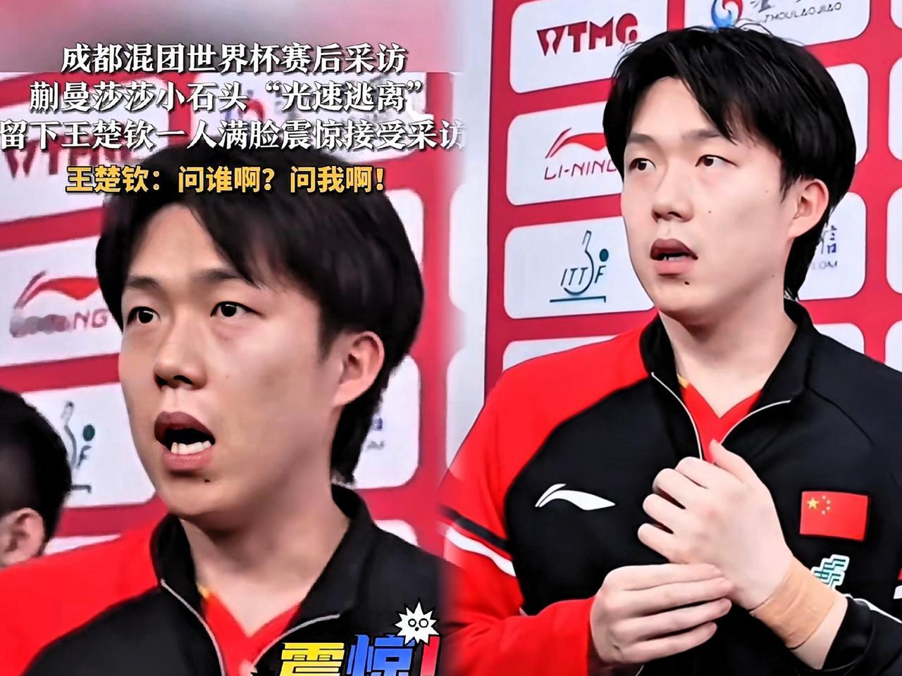 救命! 成都混团世界杯赛后 这经典一幕我能笑到明年! 采访区直接上演“队友闪现撤退术”, 莎莎、蒯曼、林诗栋默契开溜, 脚步快得带风, 只剩王楚钦一个人被留在原地。 大头整个人都懵了, 转头看看空荡荡的身边, 又看看面前的镜头, 一脸“我是谁我在哪儿”的表情, 嘴里还嘀咕着: “问谁啊?……啊,问我啊?” 这场景简直把 “死道友不死贫道”演绎得活灵活现! 队友们火速撤退 留大头一人扛起所有采访任务, 那种又懵又乖又好笑的状态, 真是综艺效果拉满。 这种真实又带点戏剧性的名场面, 大概也只有在 国乒这群“喜剧人”队伍里才能看到了, 可爱又鲜活, 比赛赢了连赛后花絮都这么有梗!