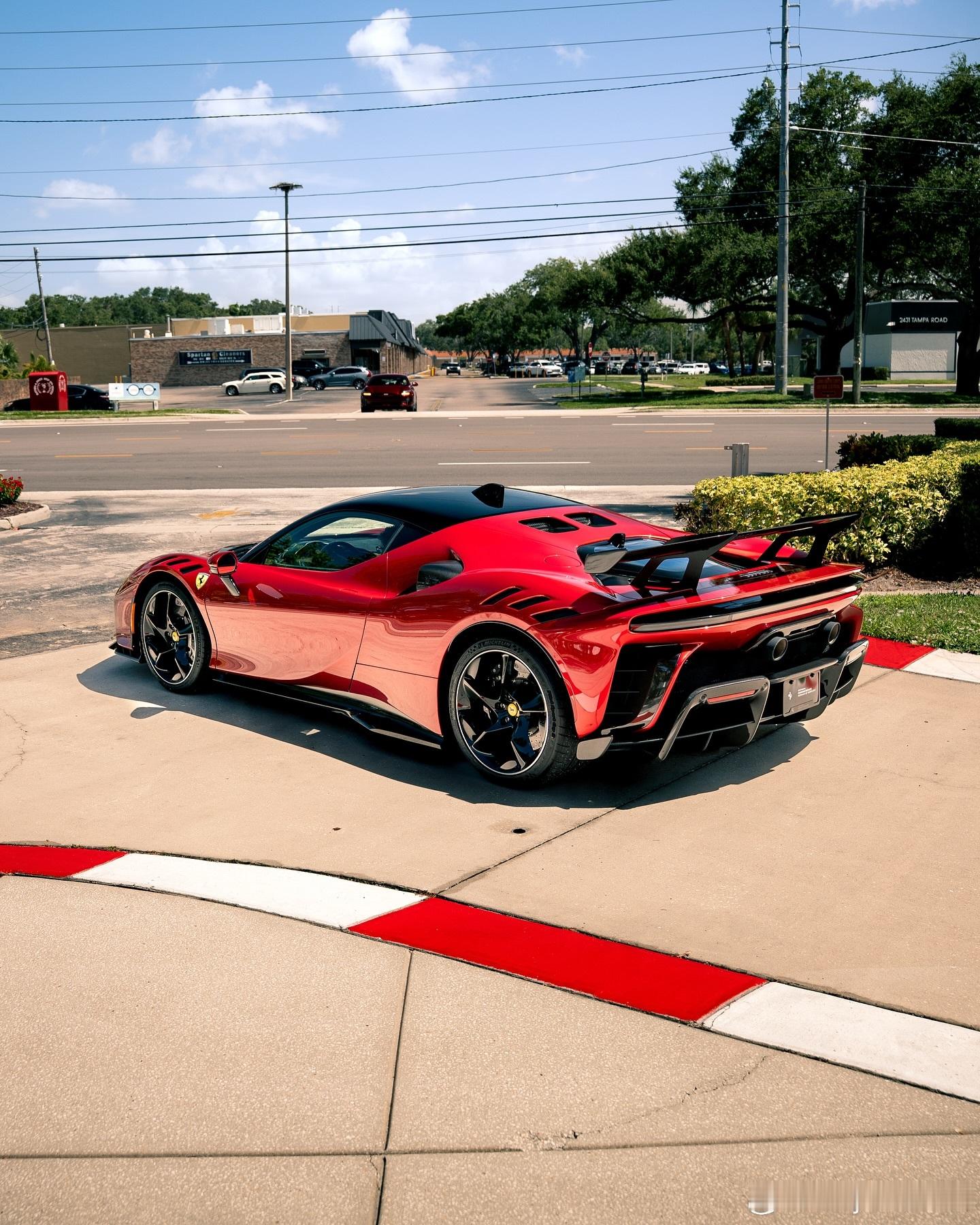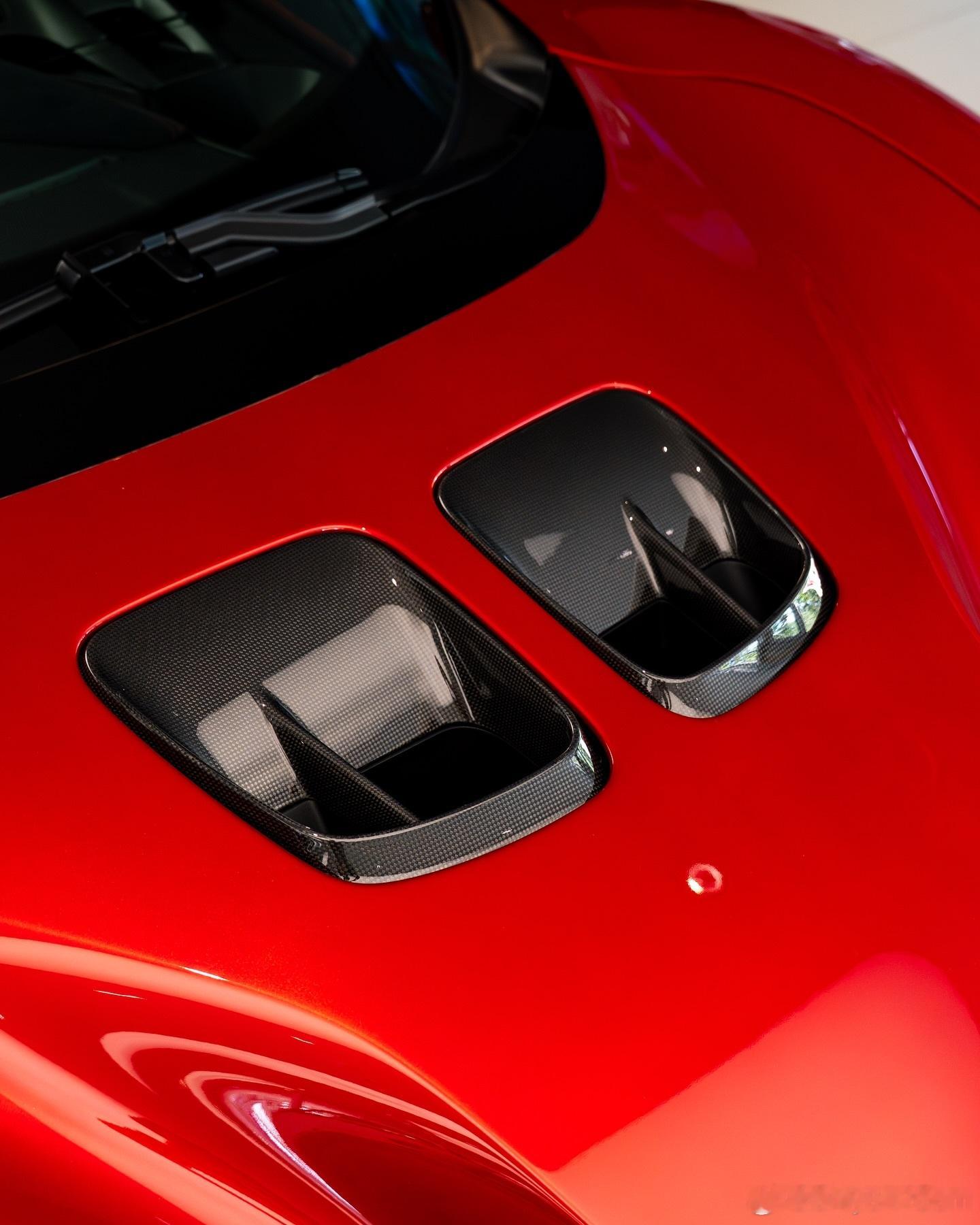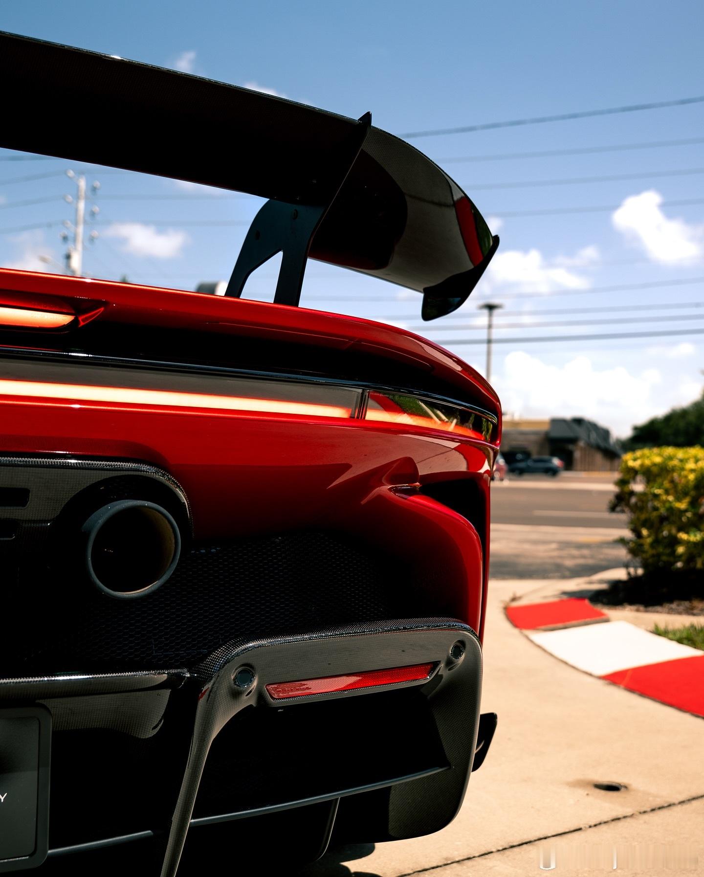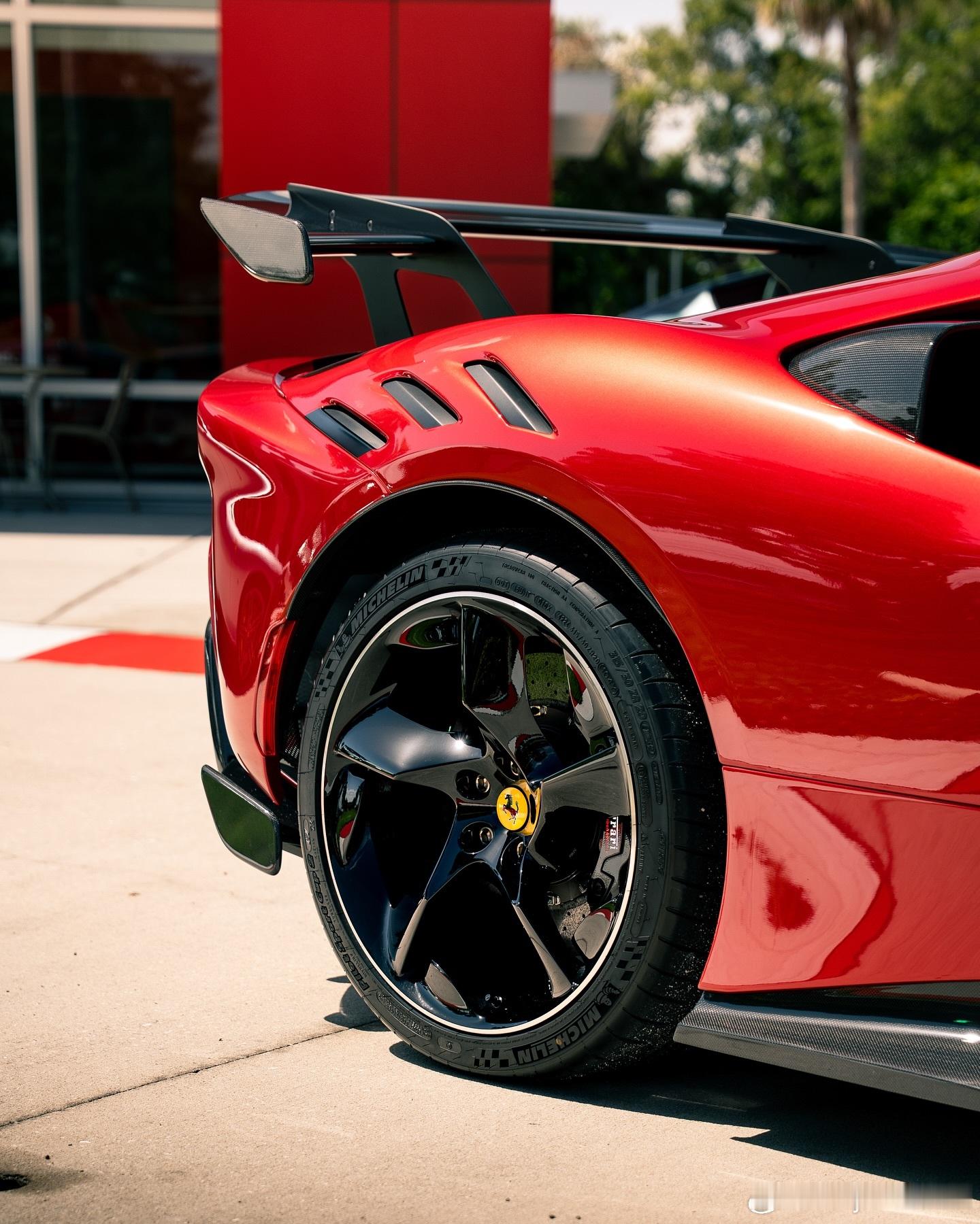 外观配色为Rosso Magma,外观方面应该没有太多的选配,内饰同样为默认的Nero Alcantara搭配红色描线。交付于位于美国佛州的Ferrari of Tampa Bay。图片来自