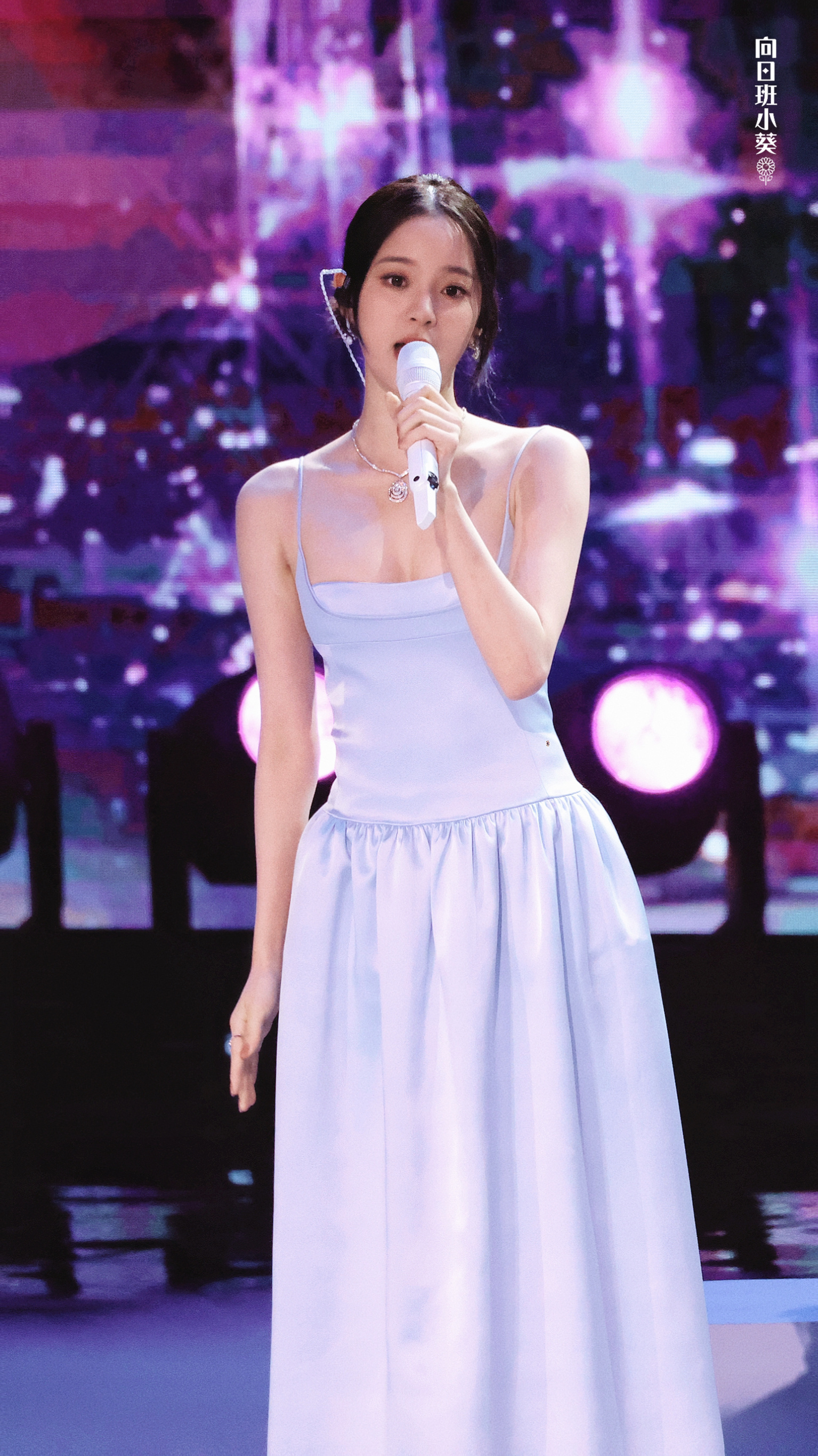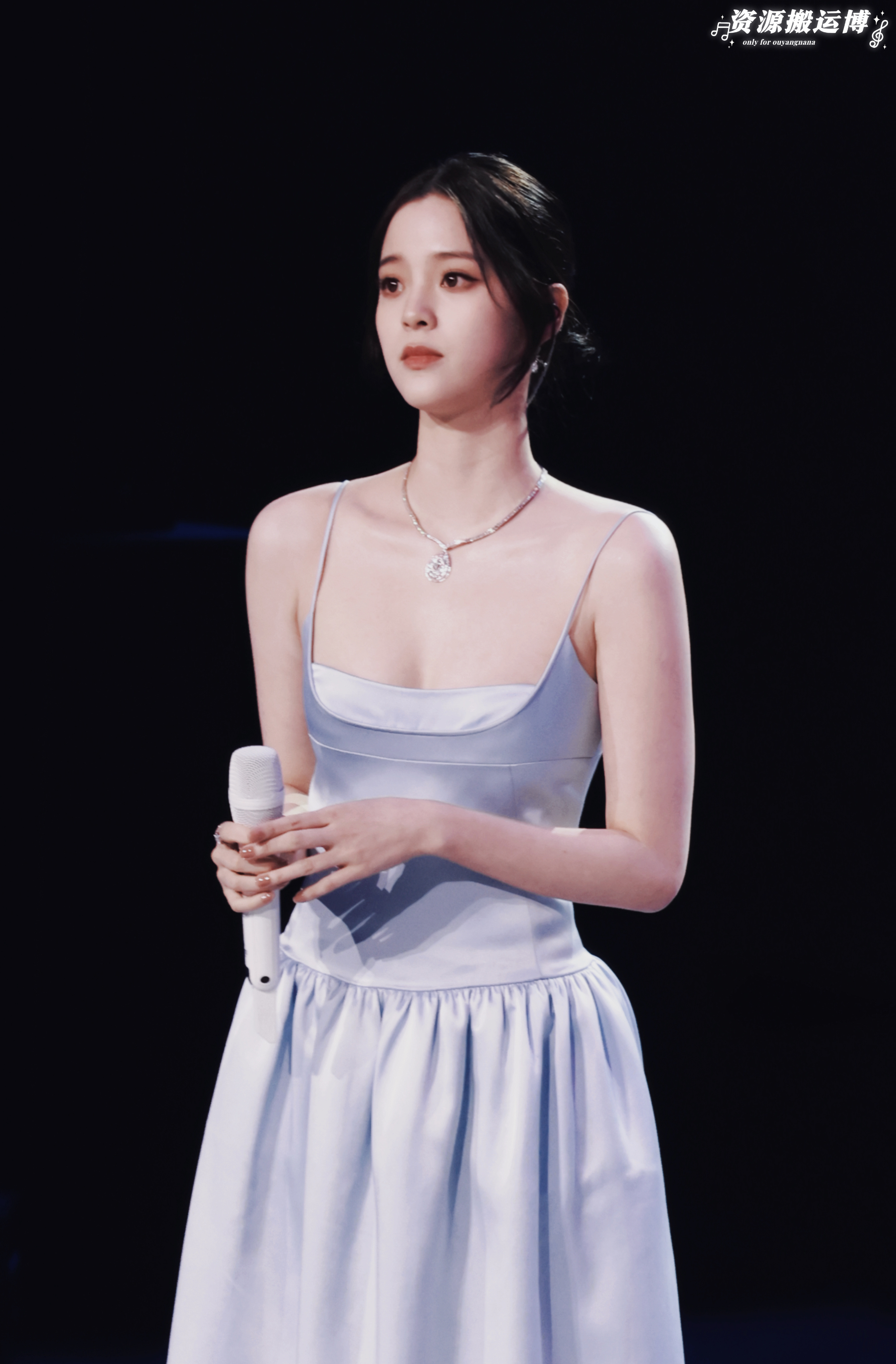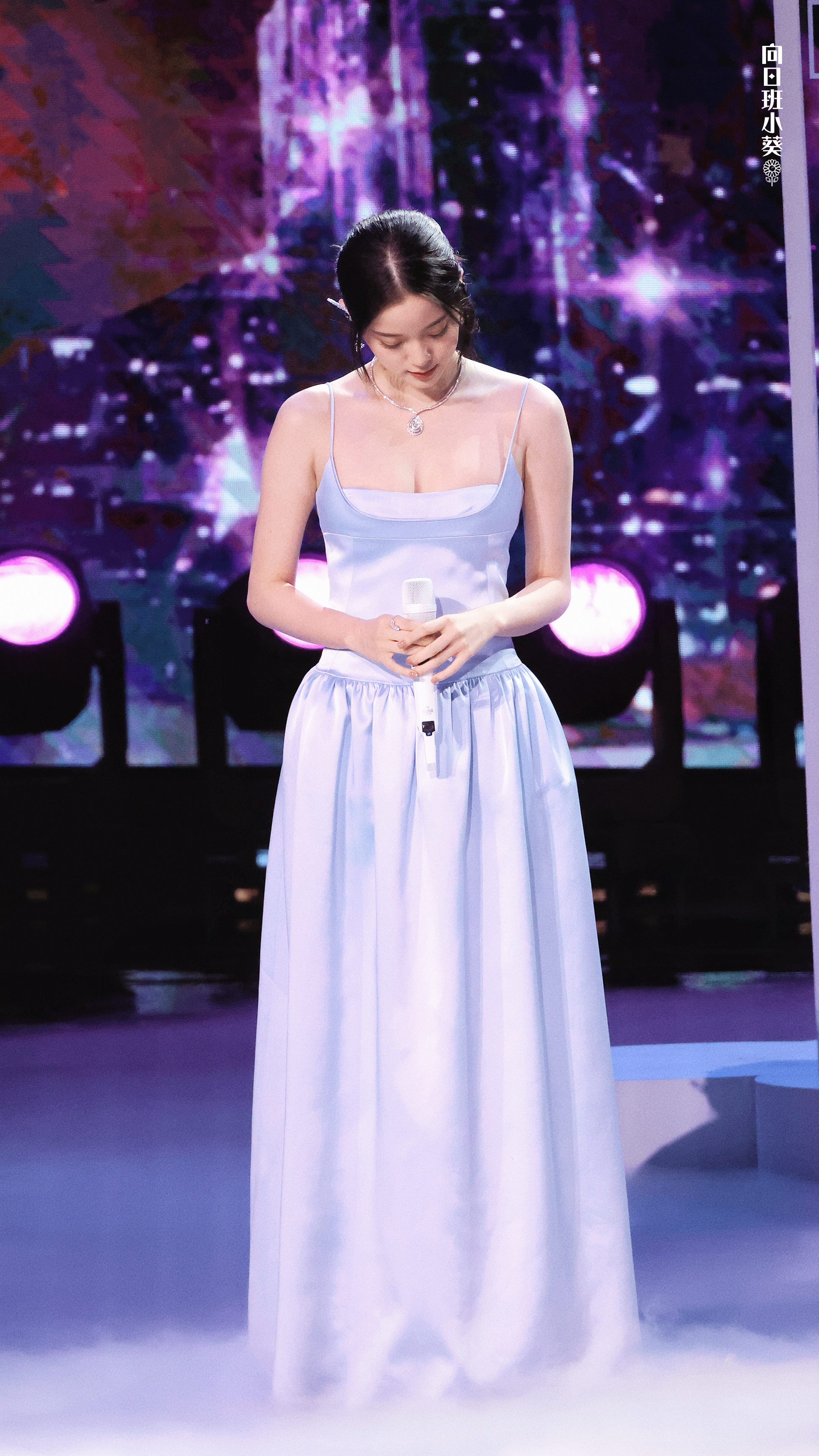 欧阳娜娜 淡蓝长裙勾勒出优雅的肩颈线条,温柔中带着一丝性感。2023.5.25