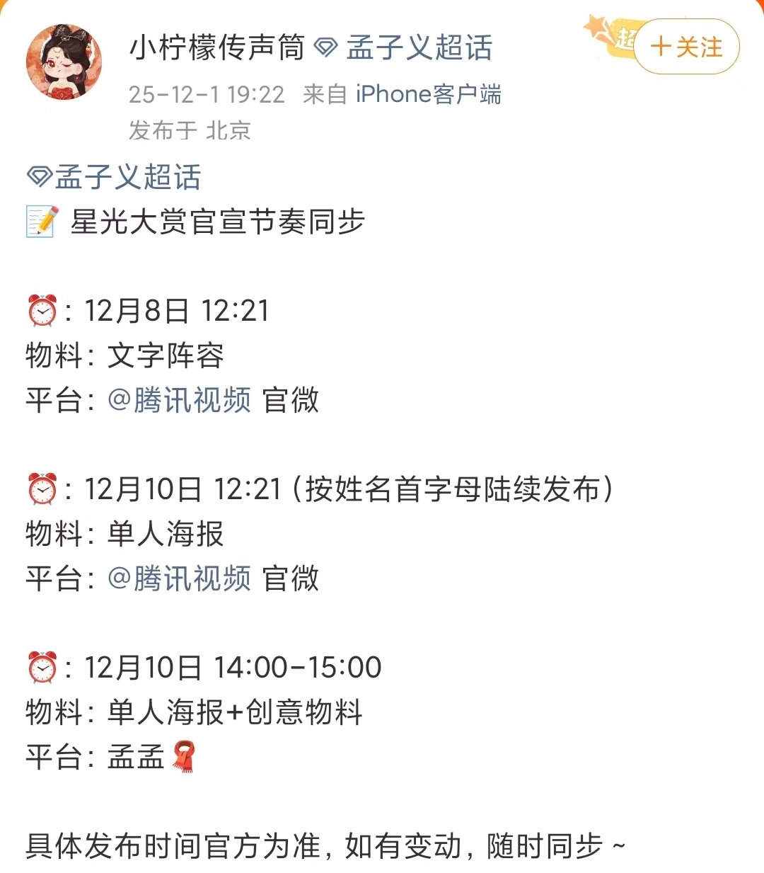 孟子义李昀锐将官宣星光大赏孟子义李昀锐都去星光大赏孟子义李昀锐都去星光大赏,年末剧宣来袭
