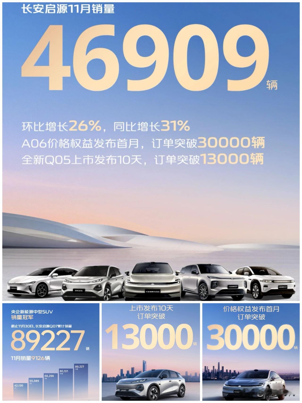 阿维塔科技 14057辆 深蓝汽车 33060辆 长安启源 46909辆 启源A06首月订单突破30000辆 启源Q05上市10天突破13000辆 深蓝L06上市2小时订单20000个 深蓝S05 11月全球销量16170辆 现在的启源A06/Q05、深蓝L06还没有完全释放销量势能,这几个车型应该都是起量车型,破万应该是比较轻松的。 长安汽车这些车型其实与对应热销车型都是错位竞争的,从品牌定位、车型尺寸到价格都是如此。现在需要做的是品牌建设、营销能力提升、产品持续迭代、完善产品矩阵。