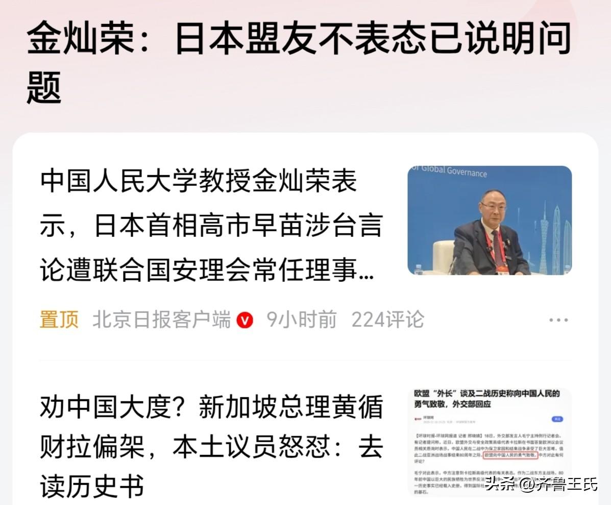 人都是趋利避害的,国家也一样。所谓的国际间的“盟友”,都是想着来分蛋糕的,但是当“敌人”足够强的时候,大家一哄而散了。 1、比如前些年,美国带着北约的盟友拳打“幼儿园”,脚踢“老人院”,什么英、法、德、澳等等一堆北约成员跟着,从阿富汗打到伊拉克,从利比亚打到叙利亚。 都是为了分那一点中东的利益,他们为什么那么积极呀,因为“敌人”足够弱,他们没有任何损失,只要跟着起码也能分点汤喝。 2、当“敌人”足够强大时,所谓的盟友就得计算成本了,尤其是你日本又不是联盟的老大,跟着你日本有啥好处呢? 而且老大美国至今都不表态,那其他的盟友自然就清楚了:美国不明确支持日本,那就是最大的表态。 国际社会就这样,平时动动嘴喊喊口号可以,但是真让他们替盟友卖命,别闹了。 资本主义讲就的是利益,如果风险足够大:还什么盟友,哪来的盟友,我们压根就不熟,好吧。