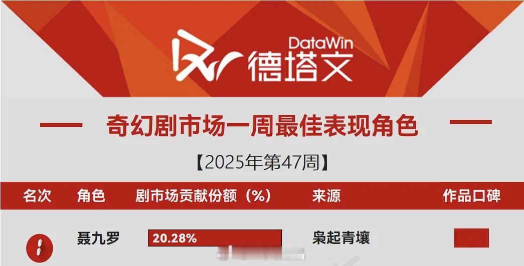 德塔文奇幻剧市场一周最佳表现角色榜迪丽热巴《枭起青壤》聂九罗继续登顶第一☝枭起青壤迪丽热巴聂九罗迪丽热巴枭起青壤