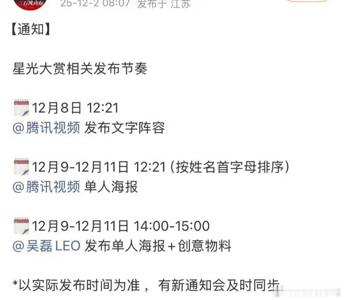 星光大赏的网传阵容(每个人都有title我笑死),如果这个是真的那图二爆料就不可